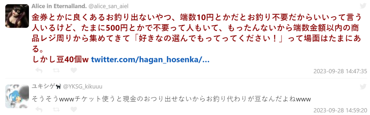 近日一位日本推主在 X 上分享自己到客美多用餐時,用 1000 元餐券付款無法找零,正當兩方在苦惱怎樣解決的時候,店員拿出了價值 400 日圓的「客美多豆菓子」,共計 40 包,推主十分滿意這個方案,帶著 40 包豆子回家當鴿子了 ( ? )
