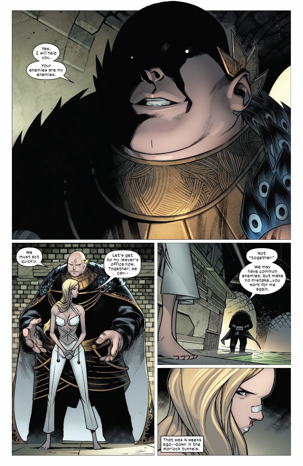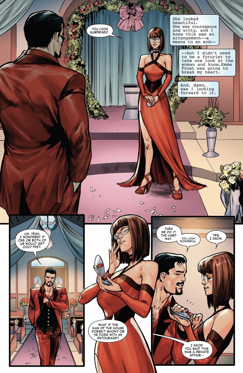 我們就來看看這兩人的婚姻到底是為何結成,又是為了什麼目的才持續下去的。在這次地獄火慶典的災難之後,倖存的X戰警們和金霸王成功逃到了紐約地下的莫洛克族(Morlocks)隧道之中。艾瑪失去了自己的五個女兒,金霸王則是失去了摯愛的妻子傷寒瑪莉(Typhoid Mary)。
