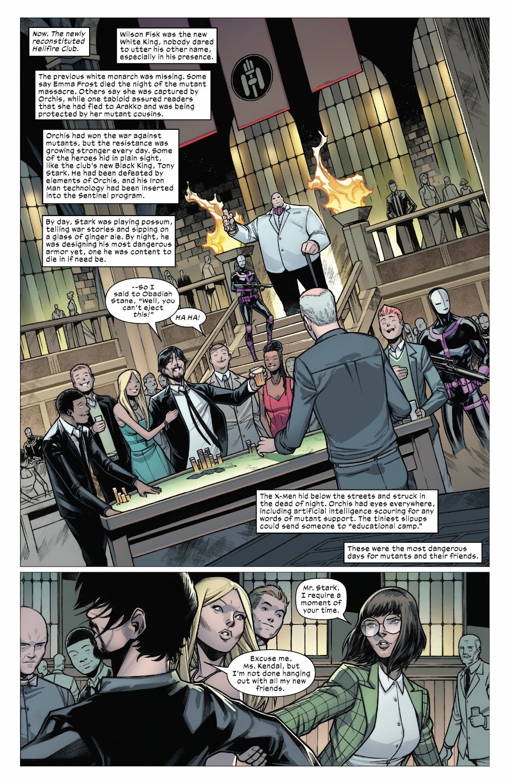 於是威爾森‧費斯克就這麼以「地獄火俱樂部(Hellfire Club)」新任白王(White King)的身分正式回歸了紐約市,而公司和鋼鐵裝都被飛龍(Feilong)給奪走的東尼‧史塔克則繼承父親的位置,做為新任黑王(Black King)來到了地獄火,把先前在這個位置上的變種人叛徒賽巴斯汀‧蕭給踢了出去。