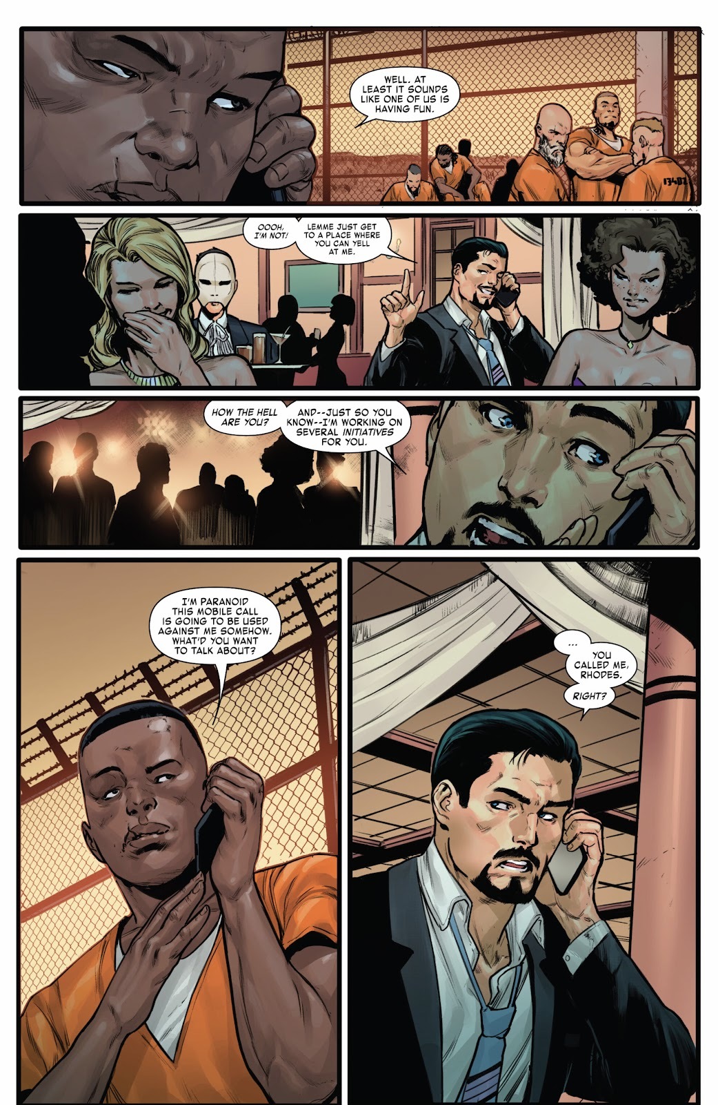 接著時間稍微回溯一點,轉到東尼這邊的視角。「戰爭機器」羅迪因為被飛龍誣陷了謀殺罪嫌而被送入監獄,東尼也一直在試著釋放他,卻沒有什麼進展。這時一通電話聯繫到了雙方,可是卻不是他們倆人之一打的!