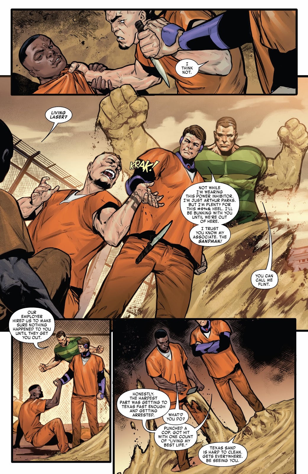但這也不是東尼設的局,那麼是誰呢?原來在十週以前,當他們剛來到地獄火展開合作關係時,黑王向白王請求了協助——而這也包括在監獄中保護羅迪。那兩位超級反派便是白王派去的保鑣。