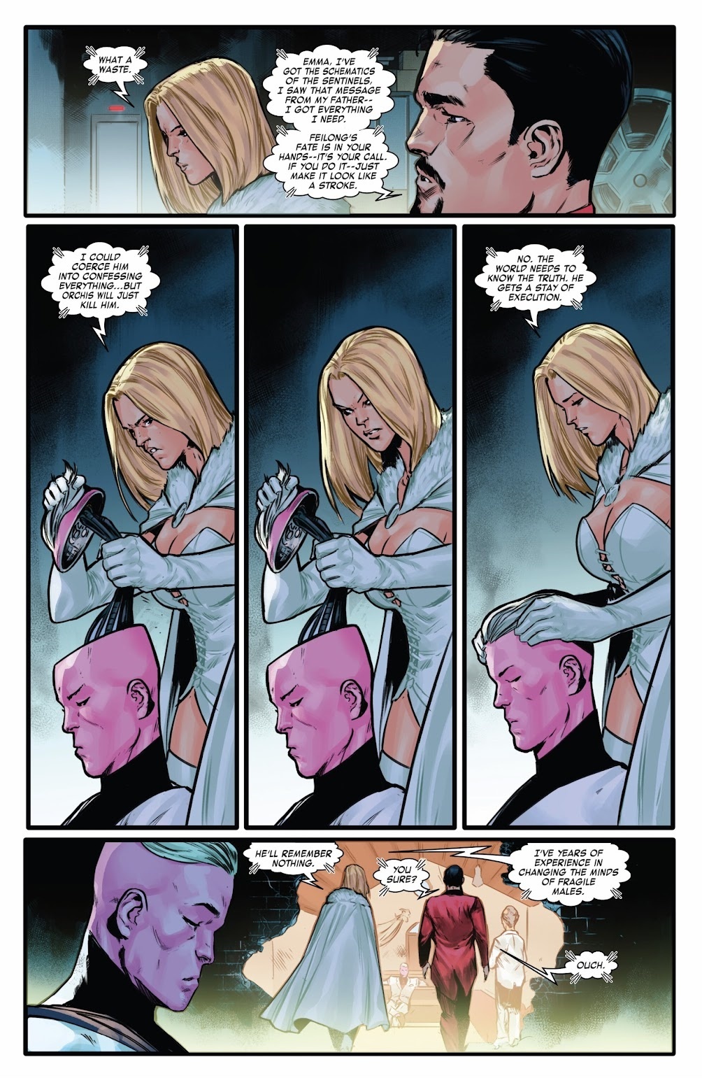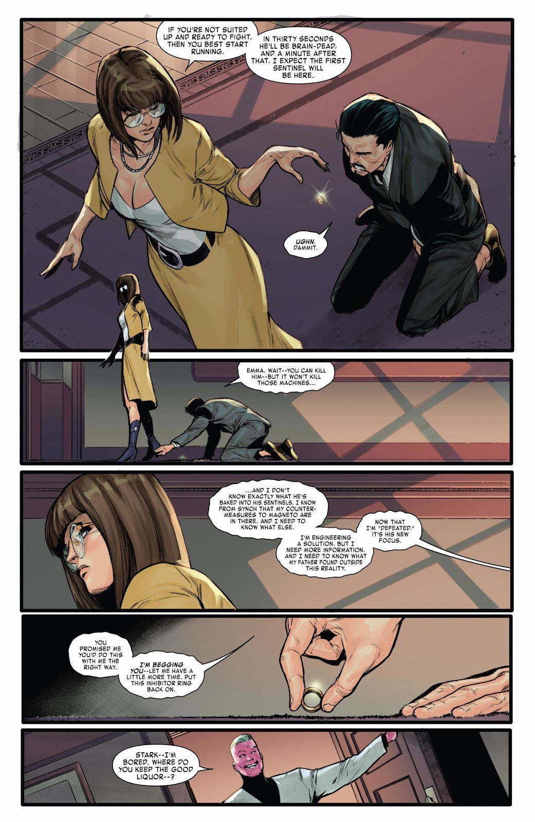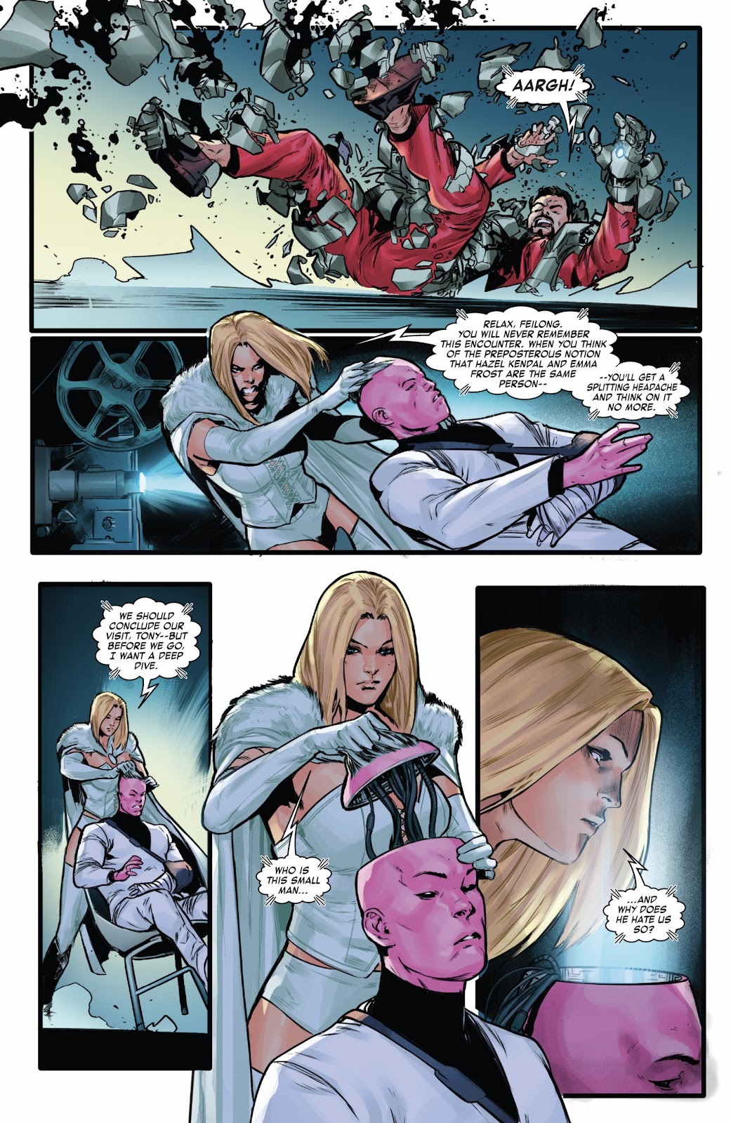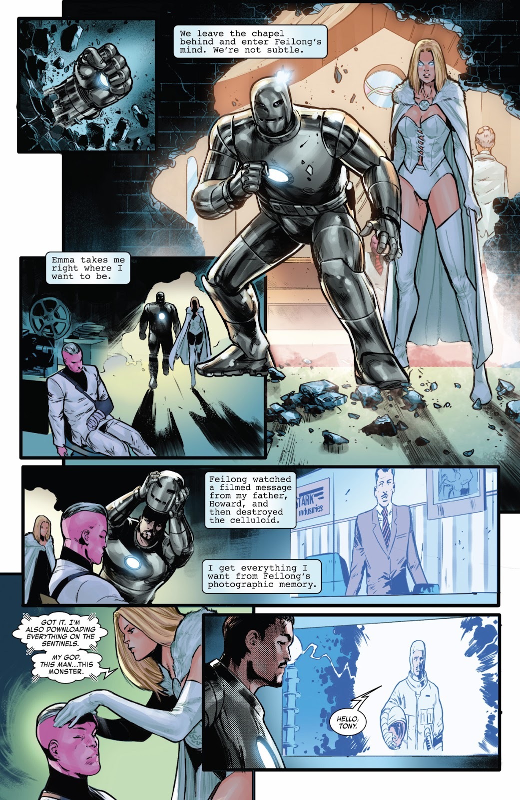 原本艾瑪完全不打算理會東尼,摘下了戒指打算直接殺出去用她的能力讓飛龍腦死,但是東尼勉強說服了她這樣只會讓飛龍的鋼鐵人哨兵變得更難對付,因為他們再也無法得知那些哨兵有什麼性能。