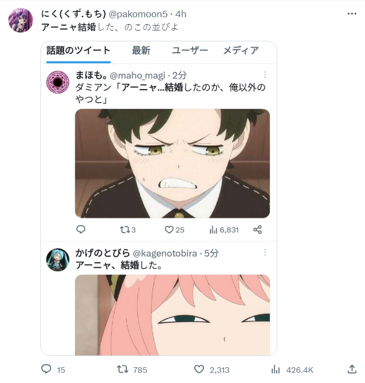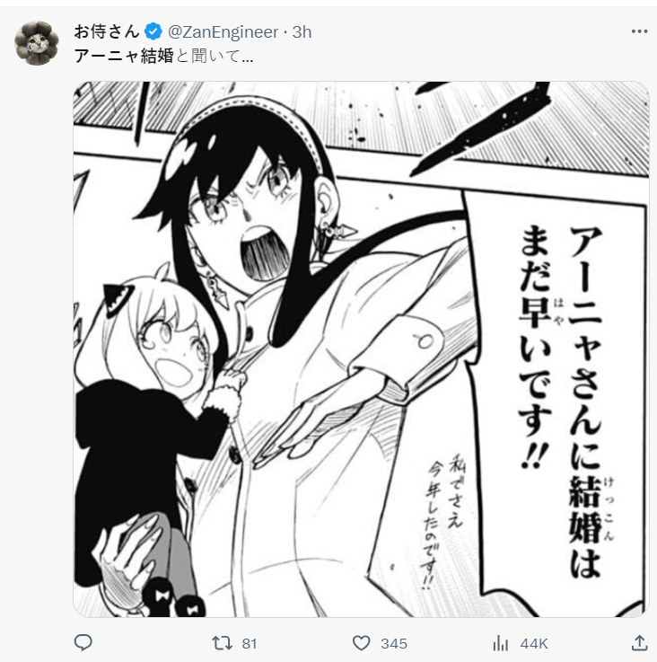 當然 X 上,也出現許多「安妮亞結婚」的相關貼文,這是個只有次子達米安受傷的世界嗎 www。