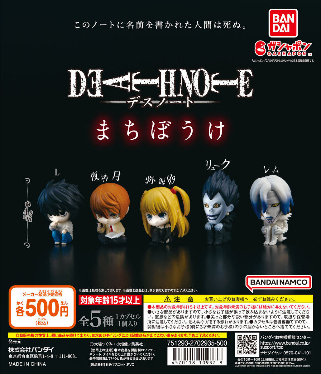 由日本萬代公司轉蛋玩具品牌 GASHAPON 發行、人氣的等待中(まちぼうけ)系列這次要推出來自《死亡筆記本》的新作「等待中的死亡筆記本角色」(暫譯,デスノート まちぼうけ)!預計本(10)月第三週開始發售。