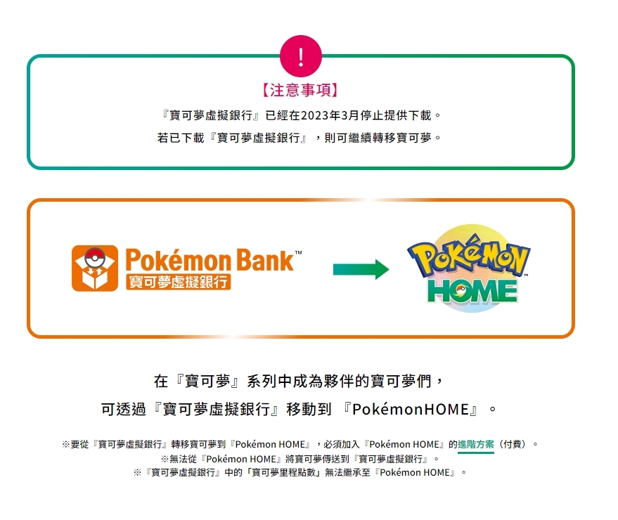 不過,也因為未來隨時都會結束掉「寶可夢虛擬銀行」服務,為此《寶可夢》公司也呼籲玩家,在這段期間盡快將裏頭的寶可夢,轉移至現在的存儲系統《Pokémon HOME》之中。