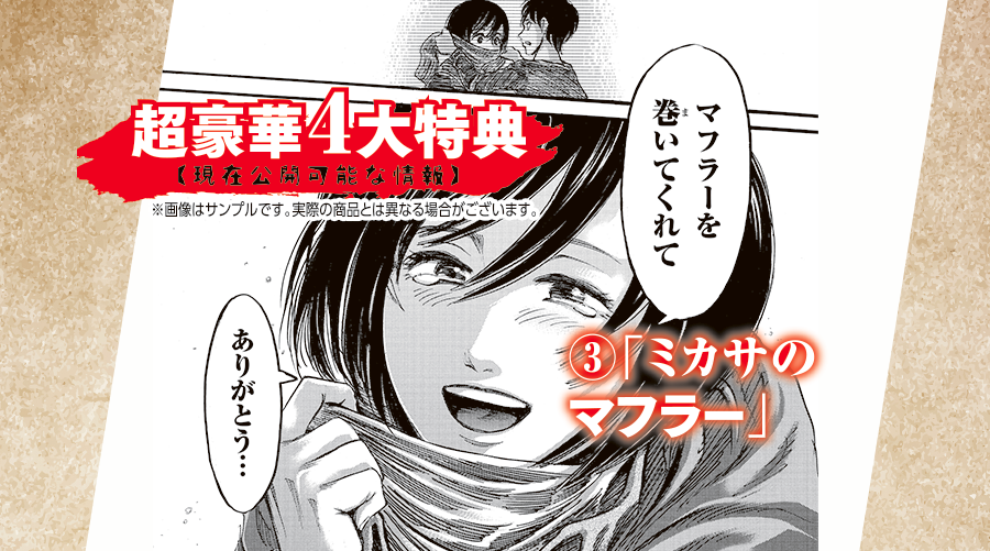 我自知畫得不是很好,不可能做出這麼厲害的上色成果。 如果沒有從連載開始一直負責彩頁的專業人士,這部作品就不可能完成。這次的彩色畫集,也感謝大家背後一直以來的支持。 此外,我現在也在為畫集畫著新漫畫。將作為特典收錄於《進擊的巨人第35卷》, 敬請期待。