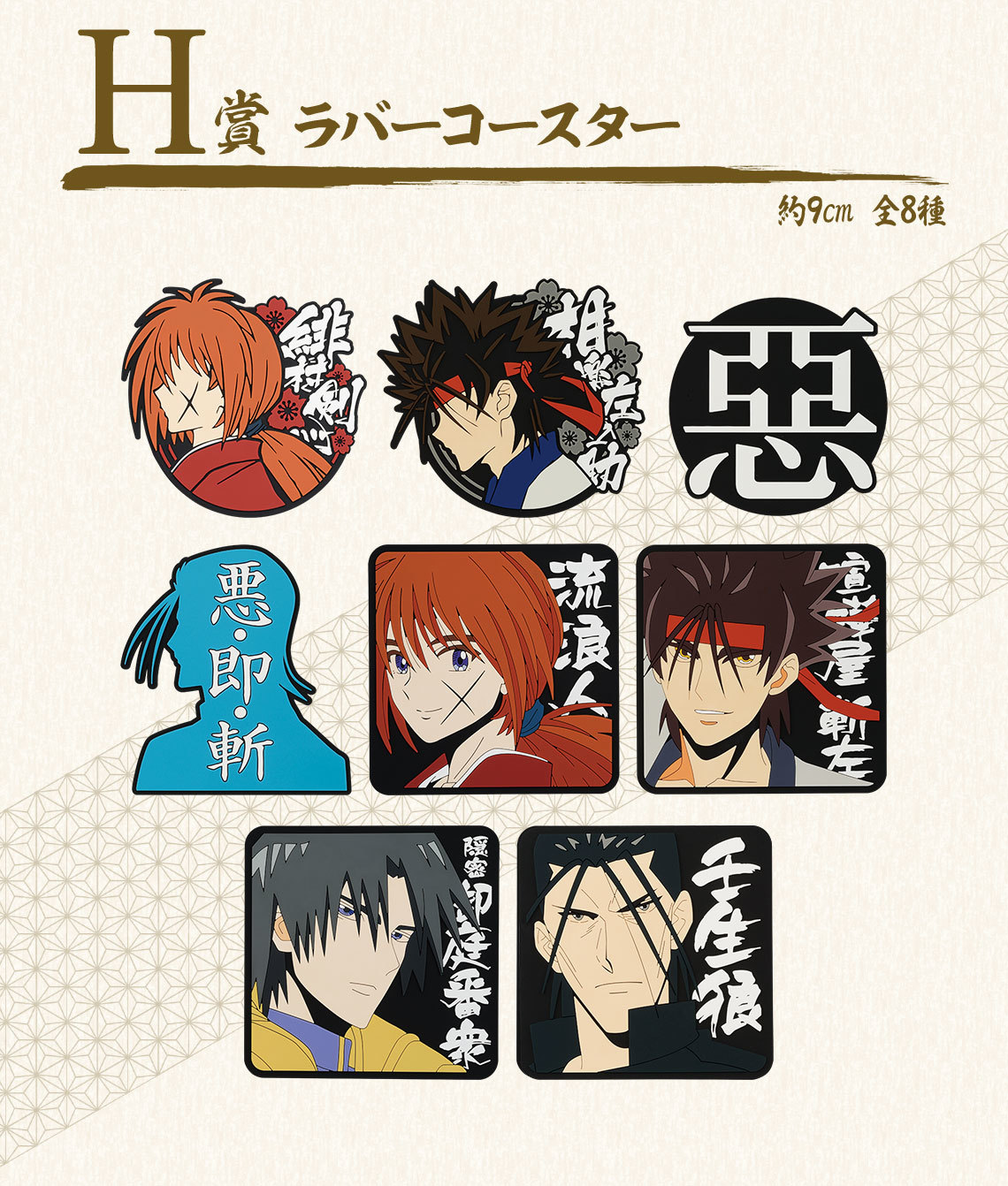 「一番賞 神劍闖江湖-明治劍客浪漫譚-」,搶先公開 A 獎的「緋村劍心 MASTERLISE」與 B獎「相樂左之助 MASTERLISE」角色模型,約 25 公分的份量尺寸與精緻的造型,還原兩位角色帥氣漂丿的姿態~另外還有大型壓克力立牌與毛巾、海報、杯墊等,非常令人期待!
