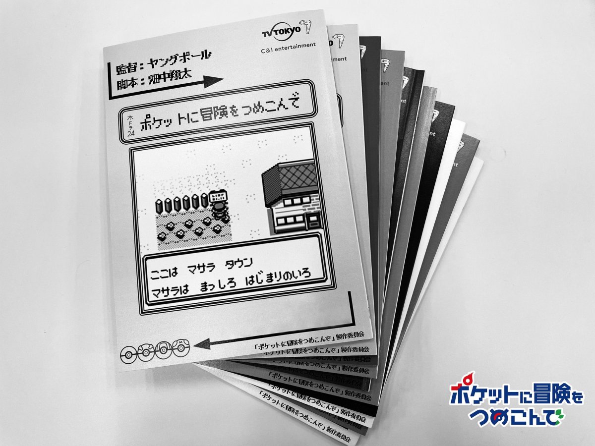 更值得一提的是,在演員們所拿到的腳本,封面更是印著有著《寶可夢紅/綠》元素的設計,擔任製作人的涌田秀幸更在Twitter中表示,一本獨特的劇本,就能夠大大地改變工作人員與演員們的心情。