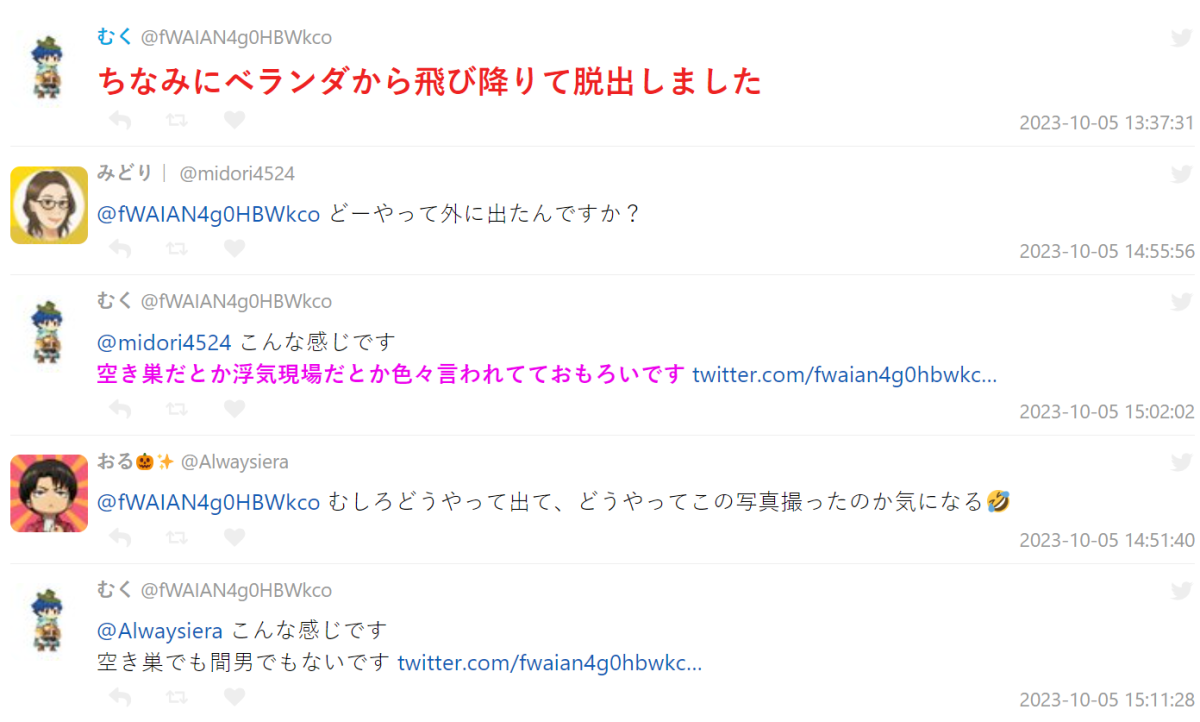 這則貼文也獲得不少網友關注,有人好奇那他是怎麼出去拍這張照片的,推主表示他從陽台跳出去才得救,意外體會到原來小偷是這麼有種,也有種像是被抓姦落跑的感覺。