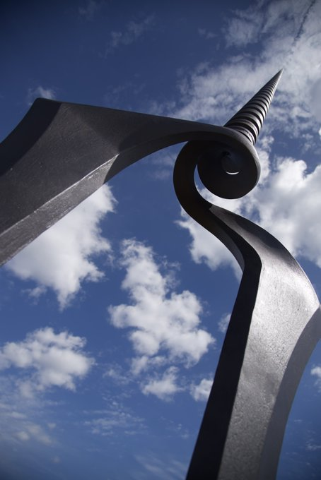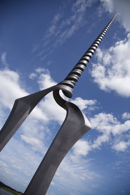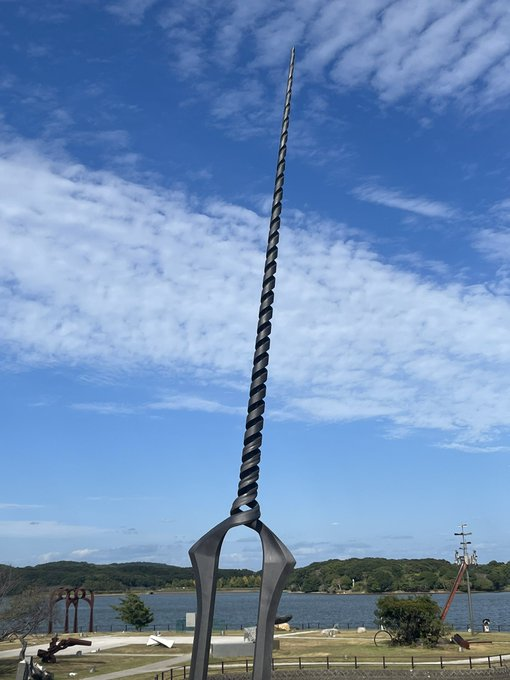 7公尺高「朗基努斯之槍」由宇部市擁有高度鑄造技術的宇部鋼鐵公司,結合地方政府資源攜手打造,採用當地廢棄汽車的車身等鋼鐵廢料製作。