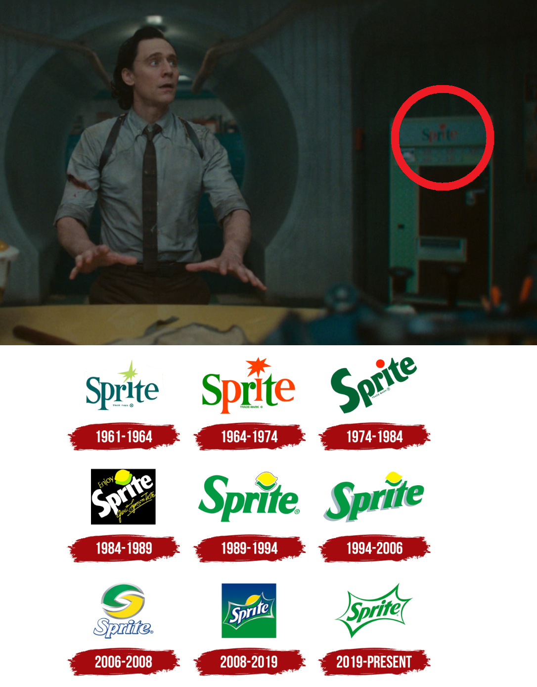 《洛基》第一季就曾出現過許多來自不同時代的產品,在 O.B. 的維修部有一台「雪碧」販賣機。這個雪碧的logo和大家印象中的不太一樣,因為他是來自1964~1974年之間的。