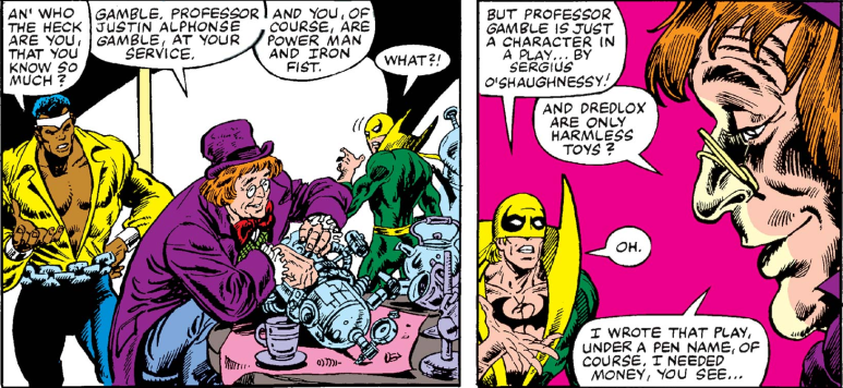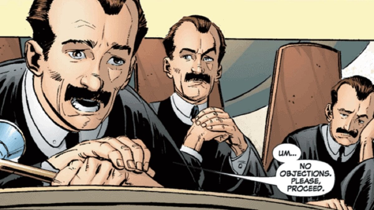 漫畫中,甘博法官全名為 Justin Alphonse Gamble,曾經是一位 TVA 特工,由於不滿 TVA 越來越冷酷的環境,他偷走一顆時間膠囊後逃走,來到當代紐約定居,將自己的時光機偽裝成一家書店,和盧克凱吉、鐵拳俠一同經營,並躲避機器人的追殺。是的,他基本上就是漫威版的「神秘博士」(Doctor Who)的翻版。