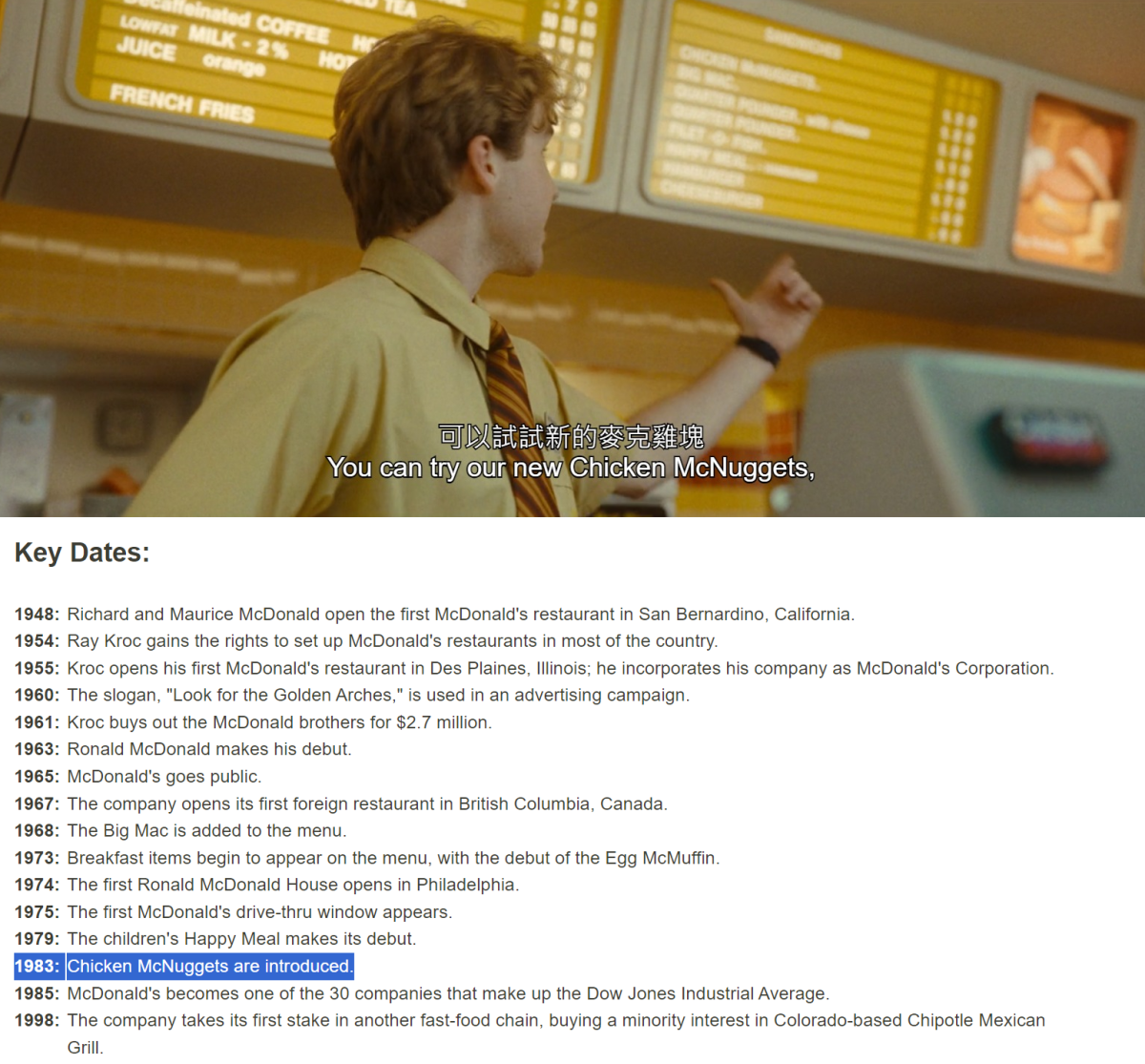 店員跟希爾薇推薦「新推出的麥克雞塊」不過在現實歷史中,麥克雞塊在 1970年代晚期被時任行政主廚 Rene Arend 所研發,礙於量產需要大量生產系統,因此直到了1983年才正式問世。顯示這個宇宙在希爾薇到來前就已經有些微不同。