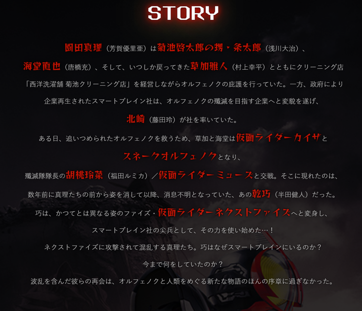 本次新篇《假面騎士 555 20th Paradise Regained》的故事中,是 TV 最終話的 20 年後為舞台,官方也公布了故事大綱。