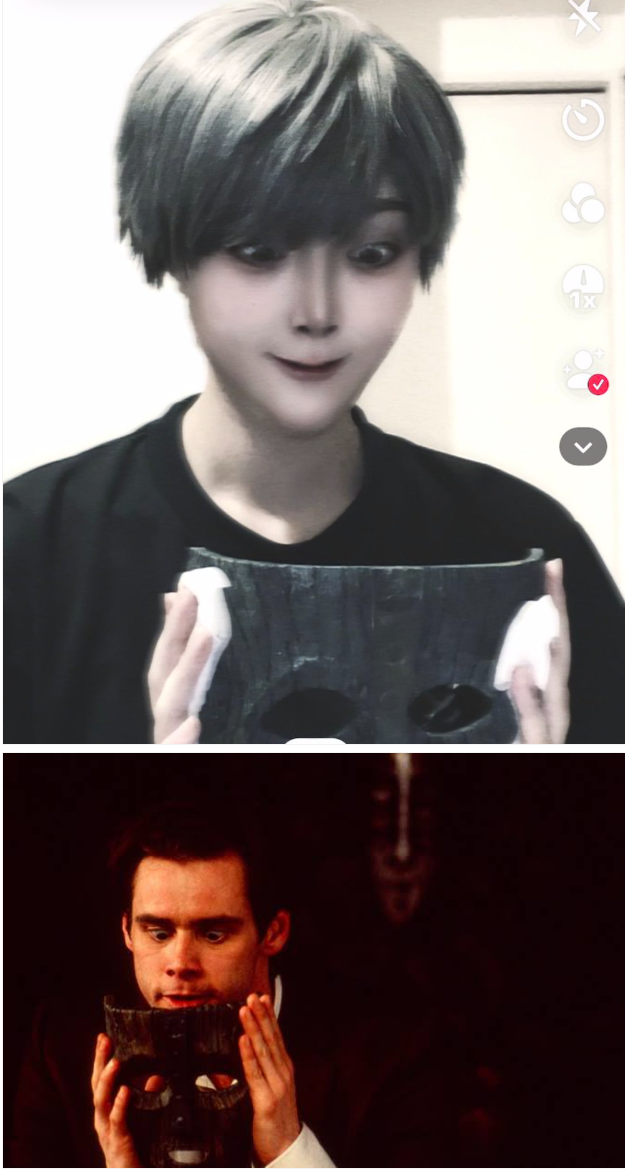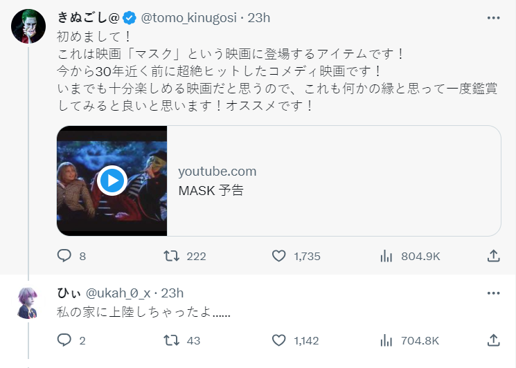 而有熱心的網友跟推主解釋,這個是源自 30 年前改編自美國漫畫《面具》的電影《摩登大聖》的道具,或許快到萬聖節了,現在滿多電商也在販售,不過這部作品似乎已經被不少人遺忘了,畢竟有點久遠了。