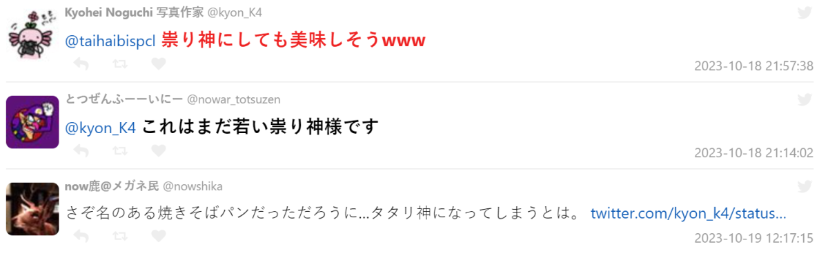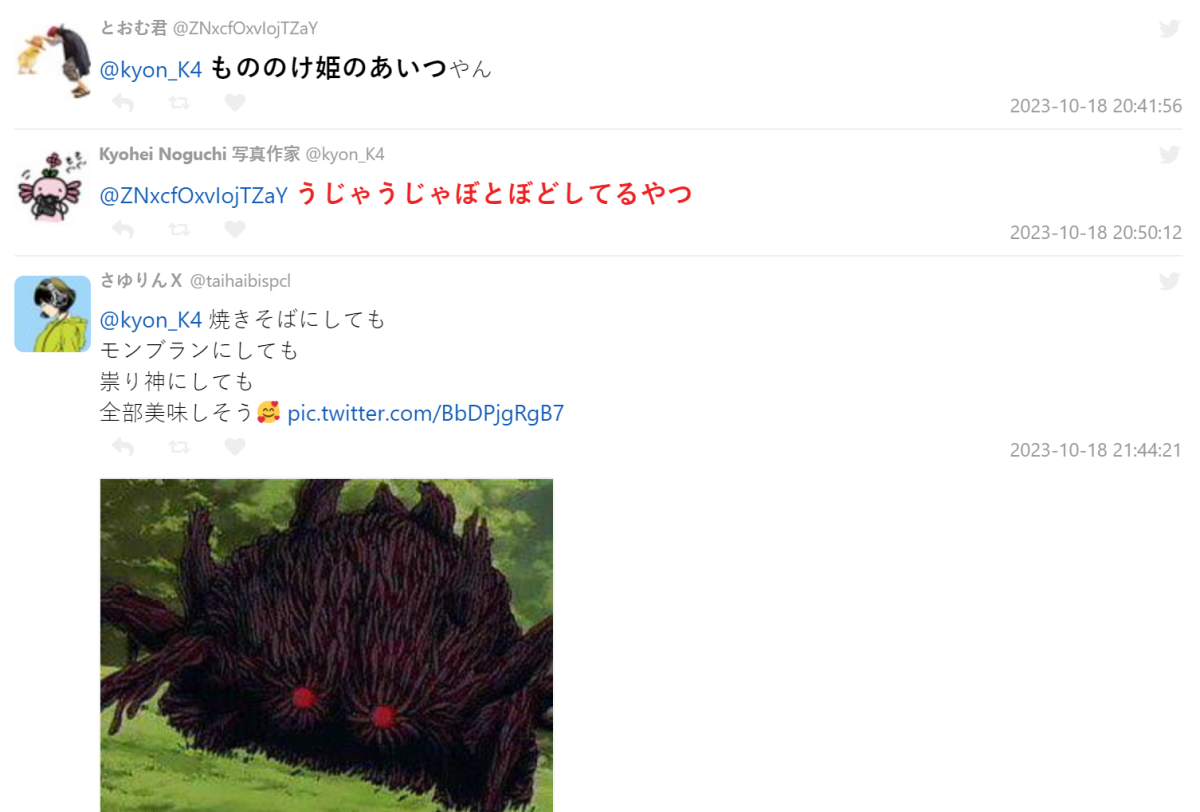 這樣的巨量的炒麵呈現,被網友戲稱像是《魔法公主》的邪魔神(タタリ神),看起來莫名讓人恐懼阿 www。