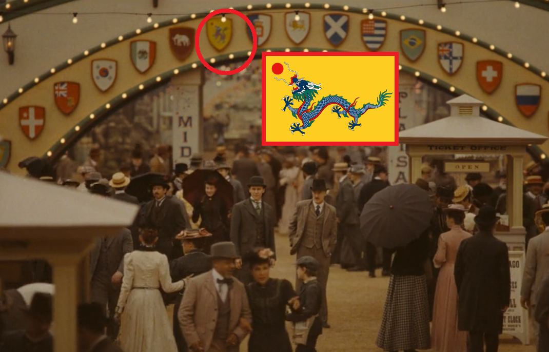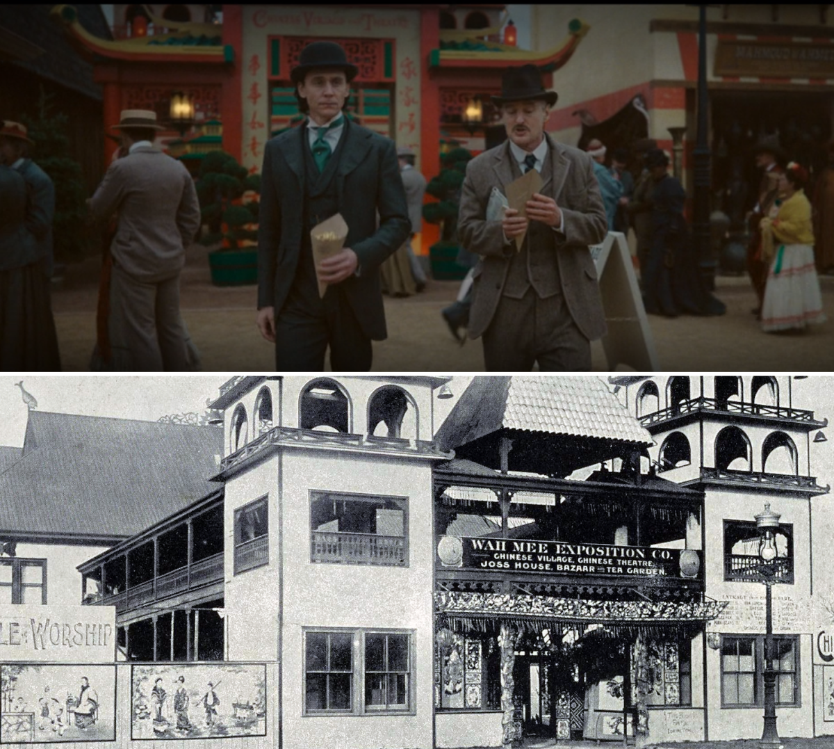 洛基和莫比烏斯經過中國館,可以注意到建築是以「中國劇院」為風格所設計。而根據歷史紀錄,1893年中國館的建築,是由華裔美籍建築師設計,所以在風格上確實迎合西方的審美觀~
