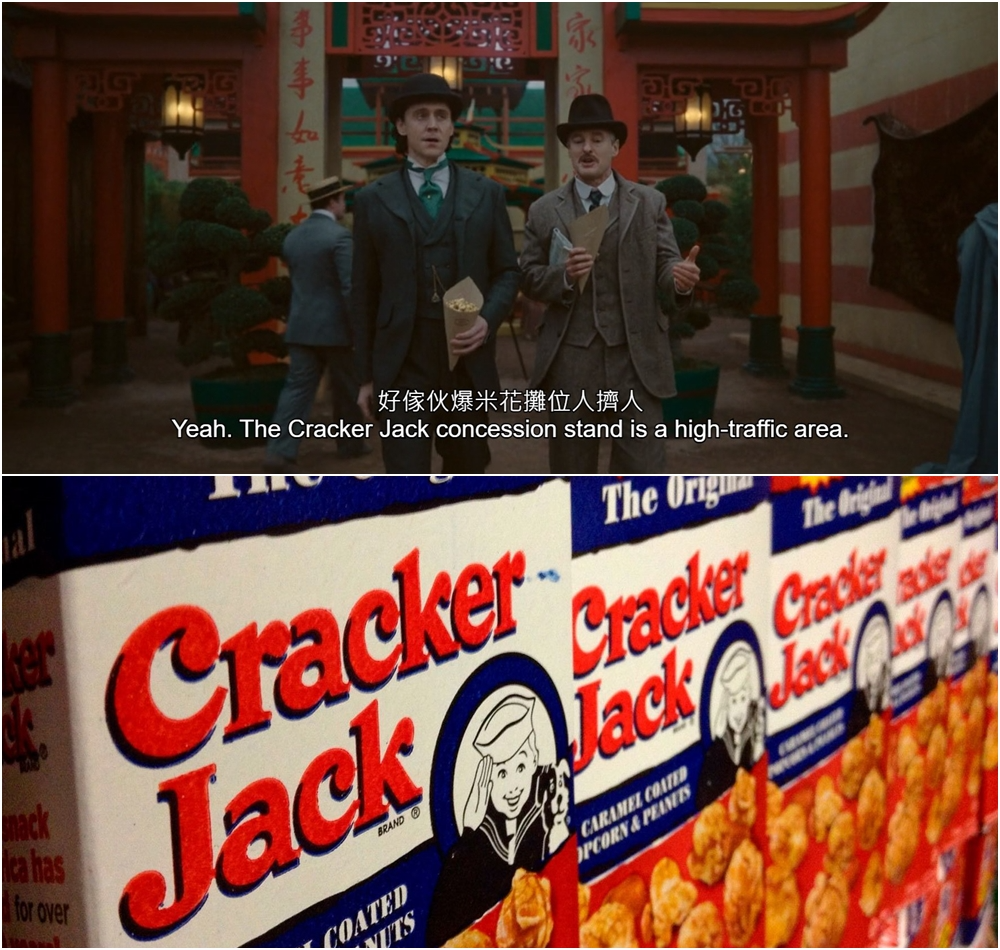 兩人手上在吃的爆米花,就是莫比烏斯口中人擠人的爆米花攤位「好傢伙爆米花」(Cracker Jack),它是美國遠近馳名的老牌爆米花品牌,在1893年芝加哥世博上首次亮相。