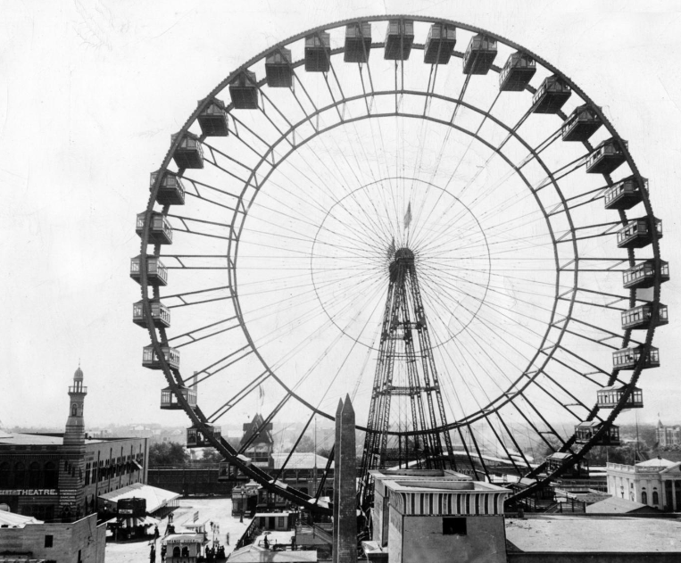 而這次博覽會上最醒目的大型摩天輪,也是歷史上最早出現的第一座摩天輪!