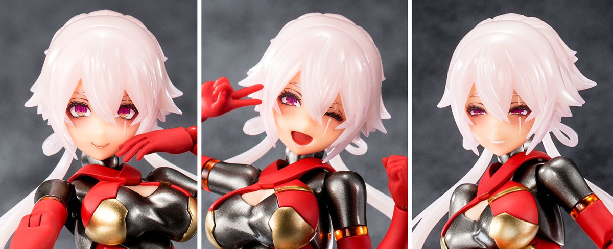 素體部分將頭髮零件成形色改為淡淡的透明粉色,膚色則是使用比蒼炎更深的壽屋膚色D(褐色),並替換了「微笑1」、「微笑2」、「眨眼笑臉」等三種全新的表情零件,相較蒼炎的內斂帥氣有著完全相反的濃妝辣妹風格。四肢零件可替換為「AUV骨架」規格的機械四肢零件,相較過去女神裝置系列商品此規格可使用的 3mm 卡榫增加,強化擴充、改造的便利性。