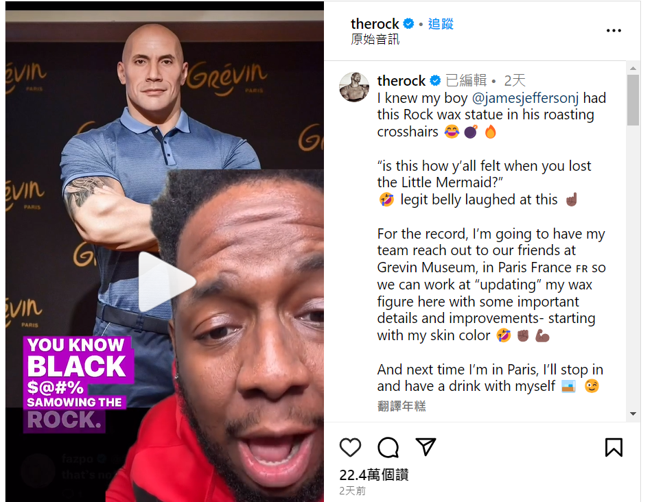 今年三月,巴黎格雷萬蠟像館(Grévin Museum)在網路上票選哪位明星最值得擁有一座蠟像,果不其然這位 WWE 巨星從多位華麗名單中脫穎而出,然而時隔多月,蠟像成品正式出爐,卻讓他在 Instagram 上要求重作!原來最大的爭議點不只是長相,而是最敏感的「膚色」!