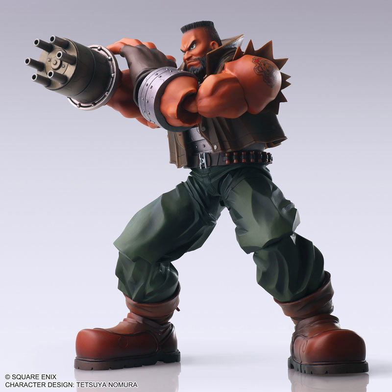 「BRING ARTS 巴雷特·華萊士」使用 1997 年 PS 版發行當時由設計師野村哲也所繪製的形象製作,在 6 吋可動規格下細膩重現動畫風格的壯碩肌肉體格,以及剽悍的斷袖背心、莫西干頭與鬍鬚,連服裝皺褶、肌肉紋路都還原插畫中的銳利筆觸,並施以豐富色彩塗裝再現陰影。配件中除了專用台座外還附有開掌造型右手,能夠再現射擊時穩定右手臂的招牌姿勢。