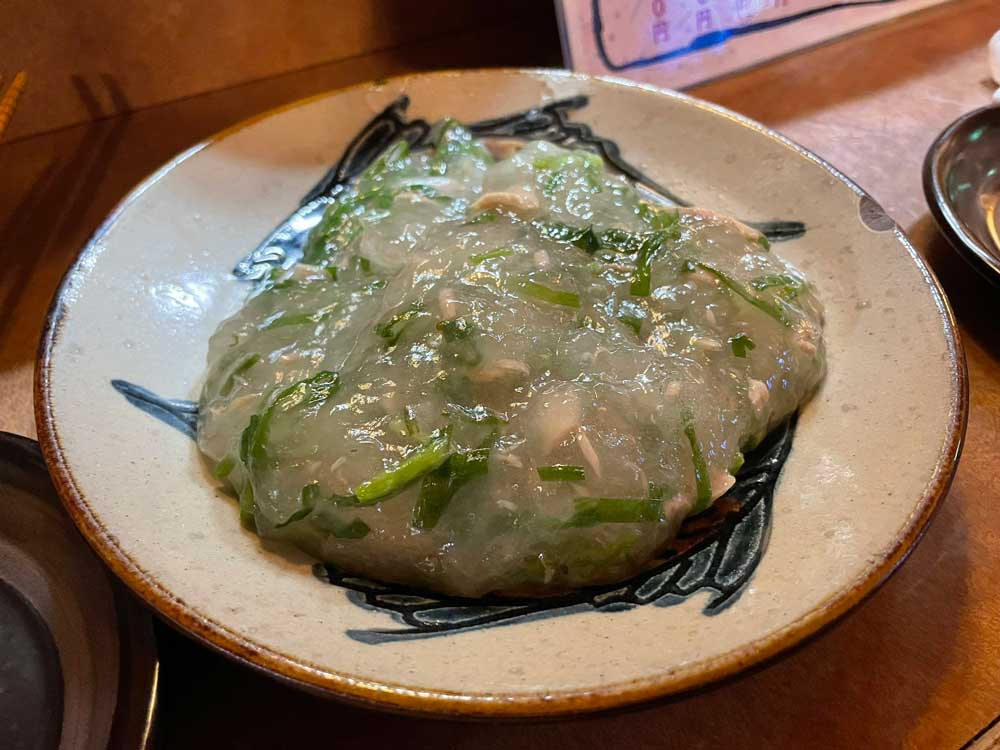 推主魔女っこれい(@majyokkorei)前往沖繩那霸市,找到位於安里車站東邊的商店街「榮町市場」的居酒屋「おふくろ」,而在那裡他點了份十分特別的料理,這料理名為「ウムクジブットゥルー」,念起來有點像是克蘇魯神話的生物名,而實際樣子也挺無可名狀的...