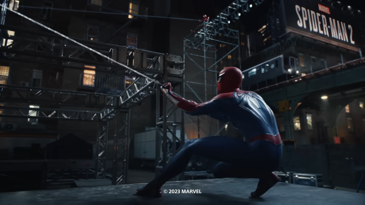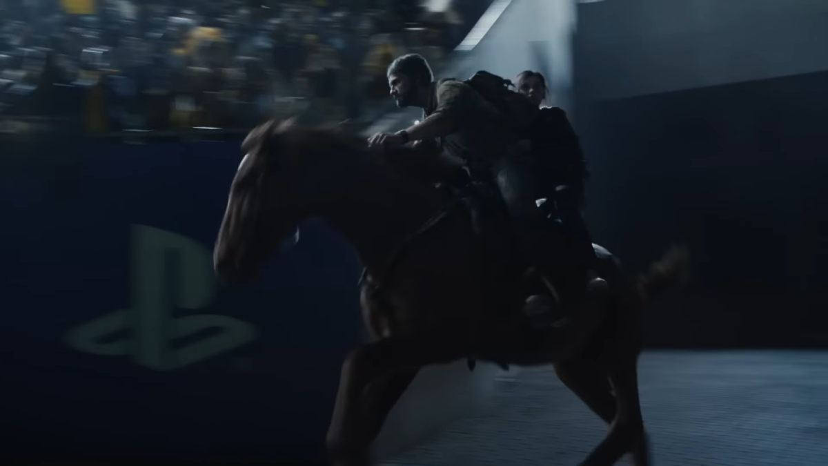 在廣告影片中,不僅可以看到才剛上市不久的《漫威蜘蛛人2》(Spider-Man 2)—「彼得·帕克」與「邁爾斯·摩拉斯」利用蜘蛛絲救援現場,撐住差點崩塌的大型螢幕,《最後生還者》(The Last of Us)的喬爾與艾莉更是騎著馬,一路奔向足球場上;更有趣的是,《戰神》(God of War)的「奎爺」克雷多斯還在觀眾席上吹著號角,非常融入賽事其中。