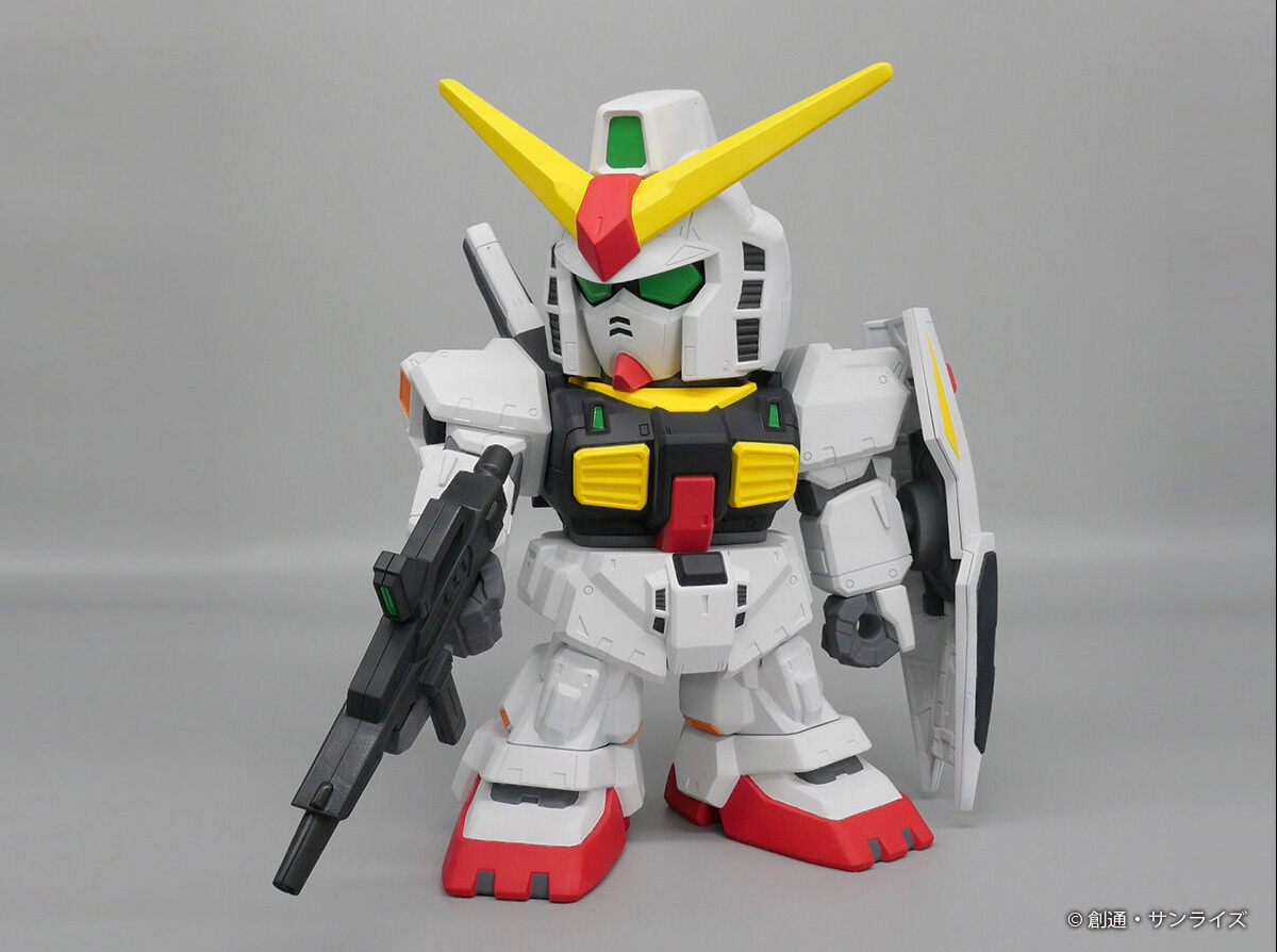 「巨無霸軟膠模型SD 鋼彈Mk-II -SD鋼彈-」以全高約 23 公分的魄力尺寸表現低頭身的 SD 造型,並使用機體遭幽谷搶奪後的白、黑、紅配色版。商品採用 3D 數位建模設計,除了具備豐富的裝甲表面細節外,也確保頸部、肩部、手掌、腰部關節都能實現旋轉可動。此外配件中還附有印有機體名稱的壓克力立牌,以及光束步槍、光束軍刀、盾牌等武裝,能夠裝備於雙手進行展示!