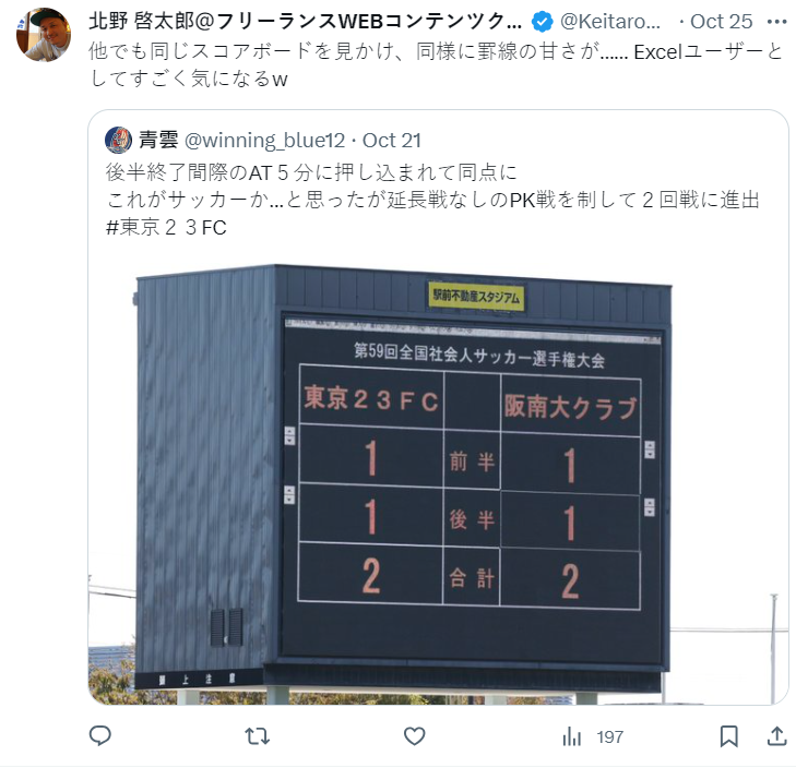 近日日本有網友到業餘足球場觀賽,比賽刺激展開的同時,卻意外發現計分板螢幕有點怪怪的,一細看才發現居然計分畫面是用 Excel 製成,上傳到 X 上後也引發熱烈迴響。
