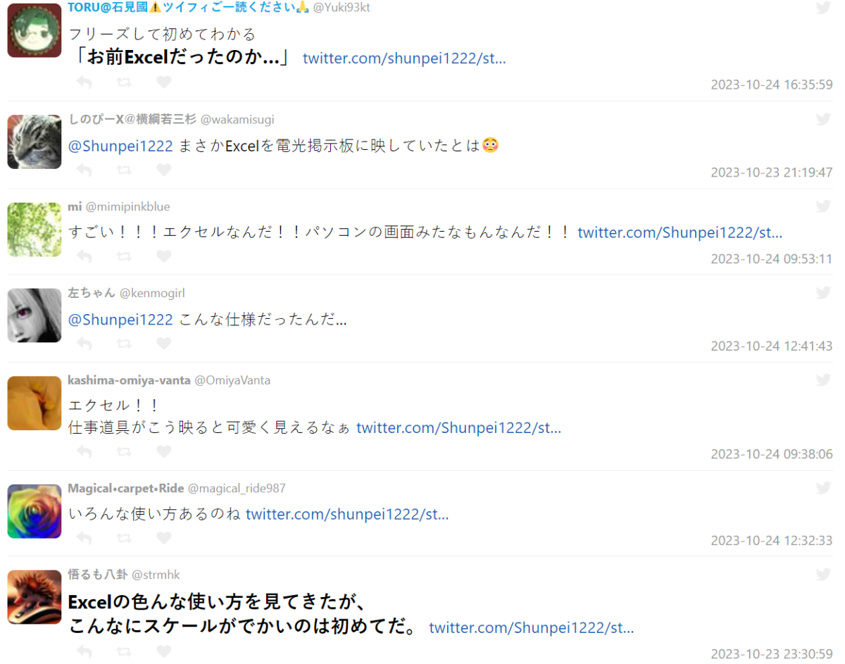 不少人看到也表示驚嘆,沒想過 Excel 居然會出現在球場,甚至電子布告欄這種位置都可以有他的存在,有種雖然簡陋但有趣的效果。
