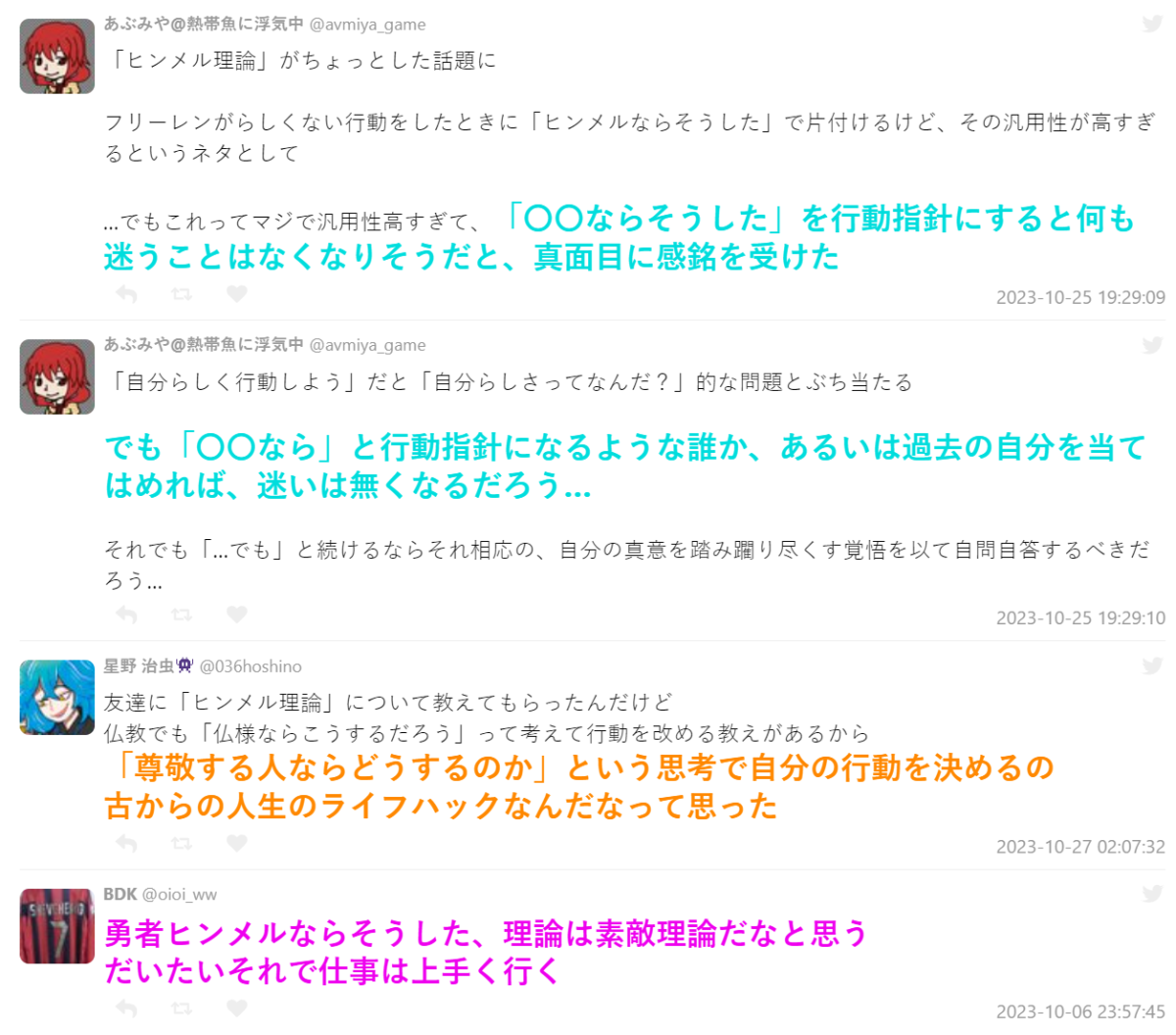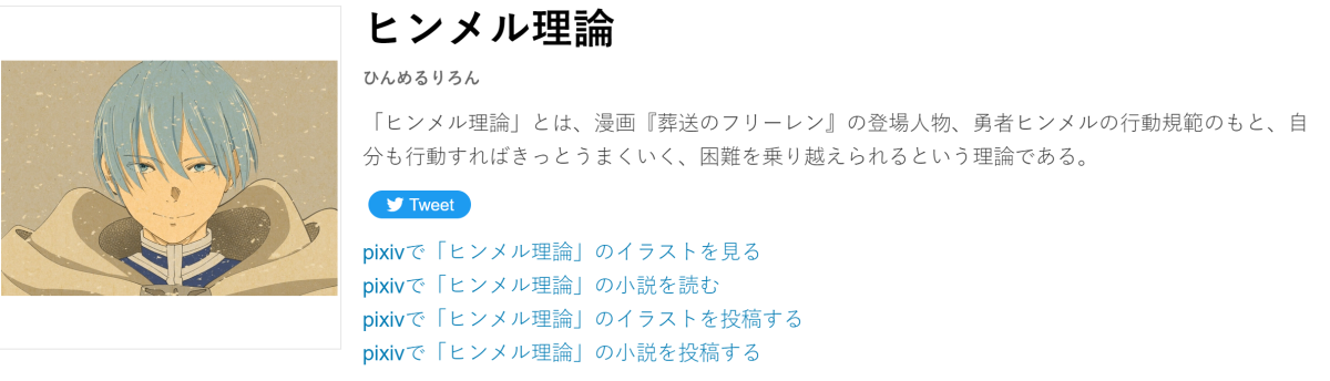 目前的 Pixiv 百科辭典也收錄了「欣梅爾理論」( ヒンメル理論 ) 一詞。
