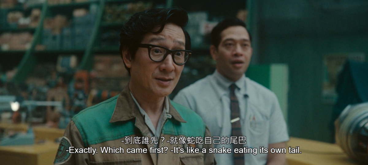 維多見到 O.B. 後認出他是 TVA 手冊的作者,但 O.B. 所學的知識卻又是來自對方,他說這個現象是「蛇吃自己的尾巴」。 這個場景暗喻了在 TVA 裡時間是一個圓的存在,而「歐洛波羅」一名在神話中也象徵著銜尾蛇,代表著「無限循環」之意。