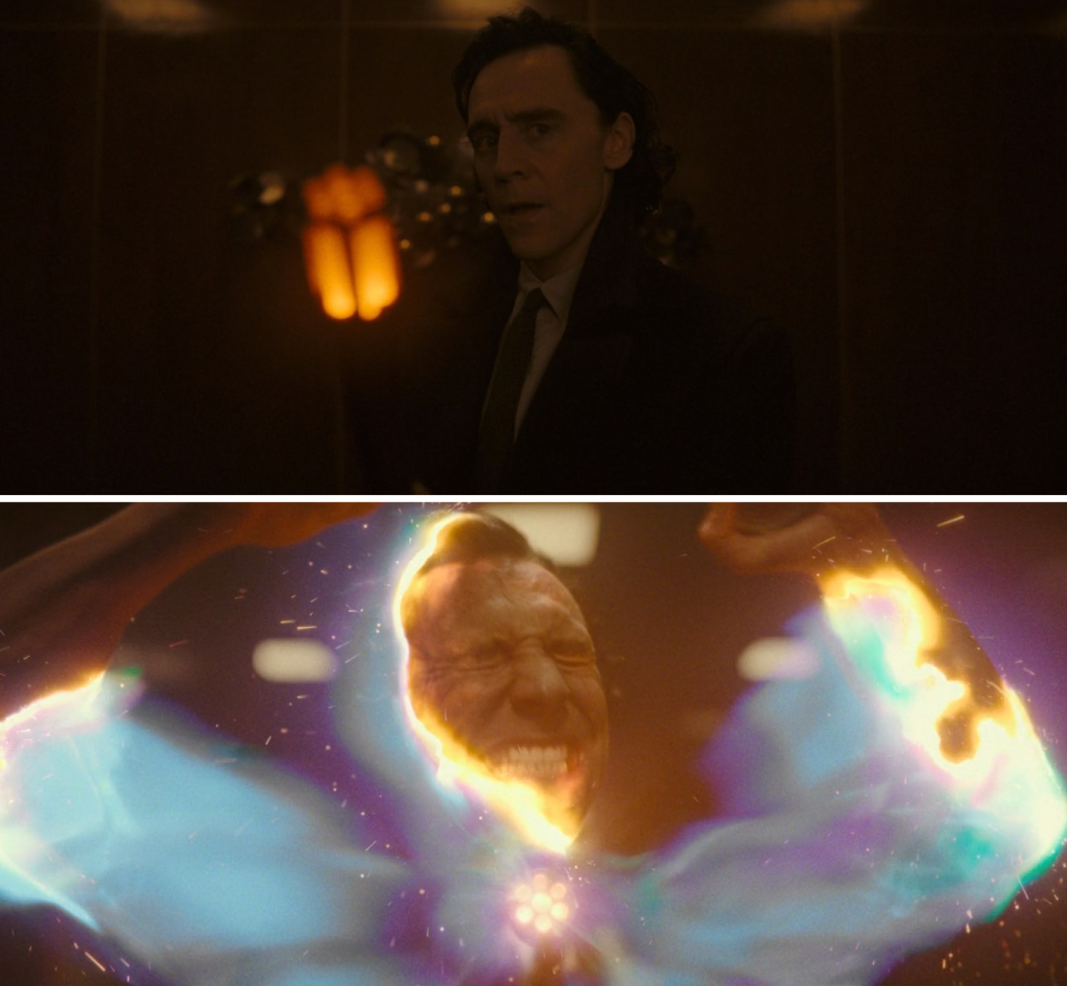 拿著消除棒的洛基走在混亂的 TVA 裡,忽然發現自己的身影站在電梯前面,原來這就是第一集中正因時間溜脫而穿越到未來的自己,這時他才明白,原來裁減自己的重任,就在自己手上。