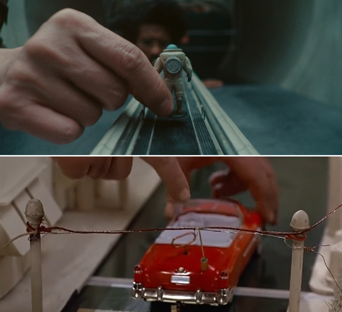 O.B. 等人用模型模擬修復時空織機,這致敬了《回到未來》中布朗博士用模型示範如何將馬蒂送回1985年的橋段。