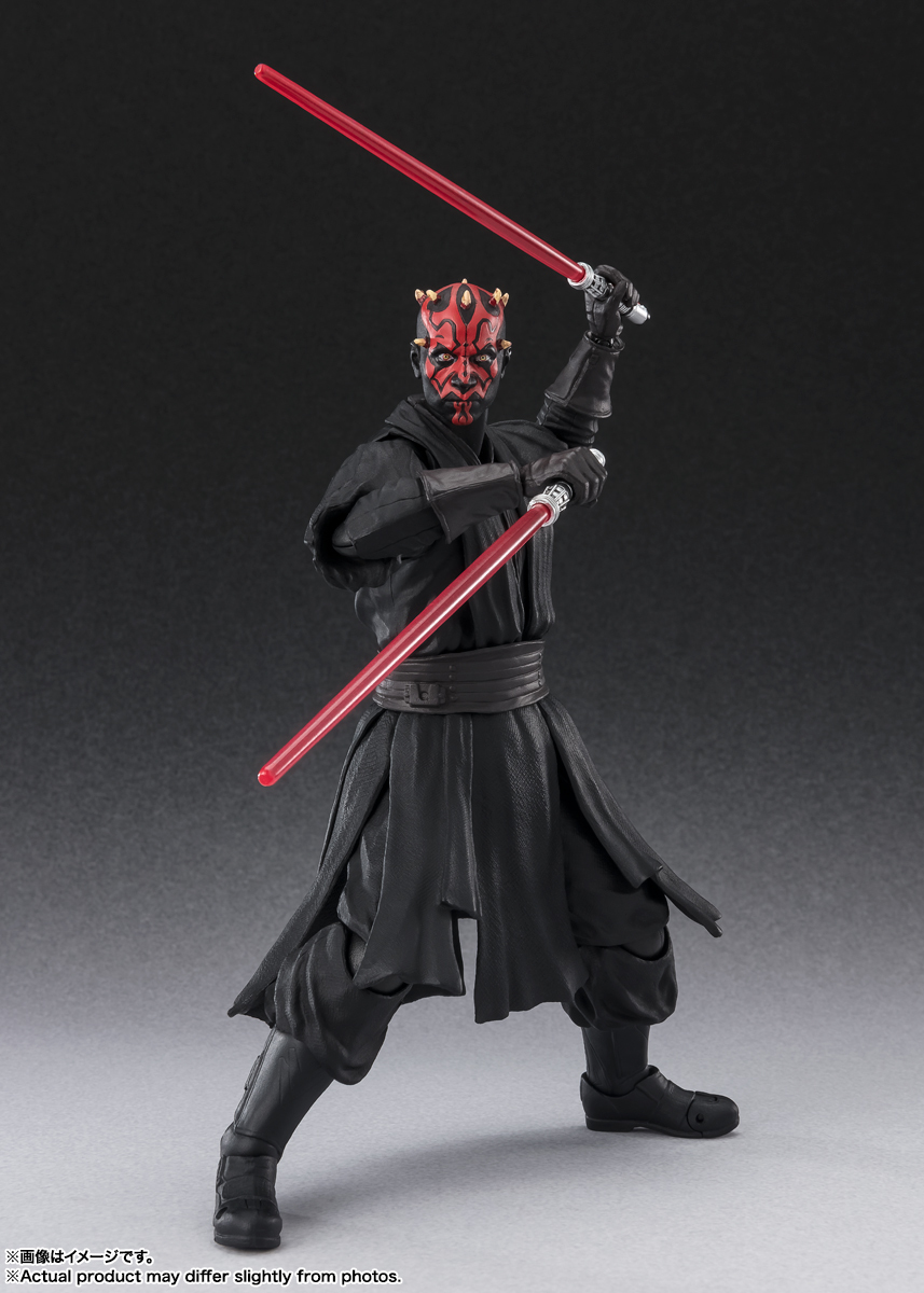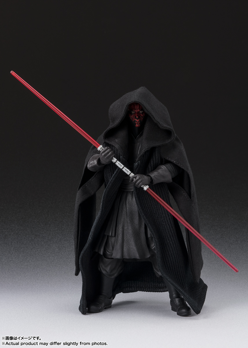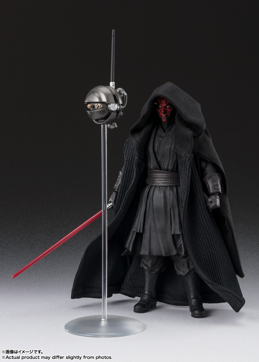 本次以《威脅潛伏》之造型設定於 S.H.Figuarts 再度立體化的西斯最惡刺客「達斯·魔」高約 15 公分,除了附上布料縫製的寬大黑色斗篷之外,還同時配置了雙刃光劍手柄、獨立的兩把光劍手柄,可以充分還原達斯·魔在劇中各個時期的造型,搭配咬牙的替換頭雕、揮動效果的紅色光劍,就能夠重現面對魁剛、歐比王還能一扛二的戰鬥態勢,值得一提的是,這次的達斯·魔還追加了在《威脅潛伏》中登場的探測機器人(プローブ・ドロイド)與專用支架喔。