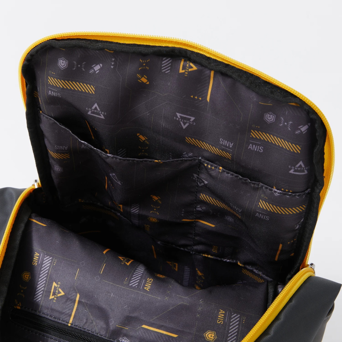 以黑白黃配色打造,多空間的收納機能可以滿足一般日常生活所需,內裡也有阿妮斯專屬的滿版印花圖案作點綴。
