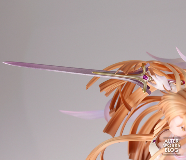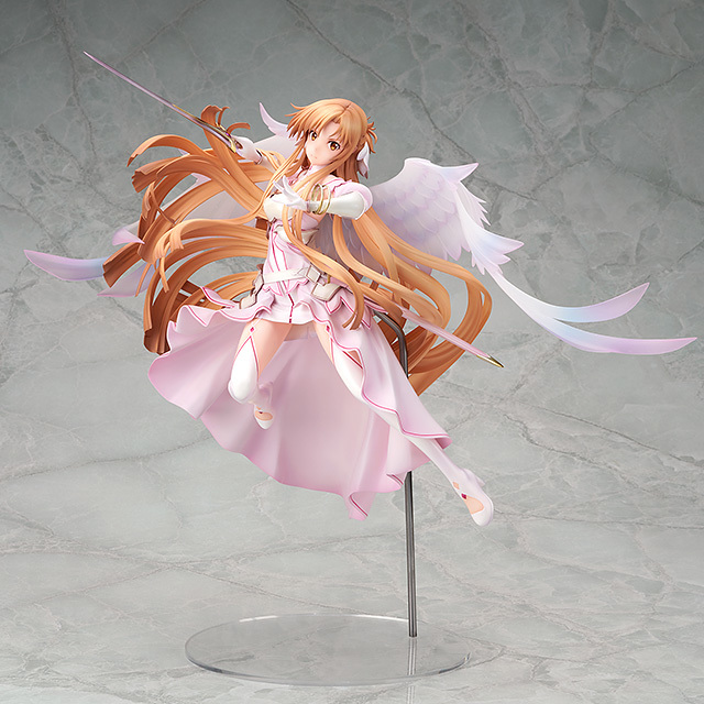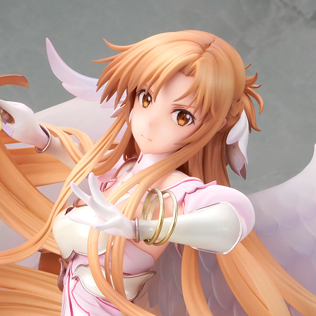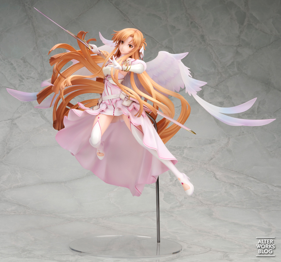 「ALTER 亞絲娜 創世神史提西亞Ver.」1/7比例模型,尺寸全高達 31 公分,以亞絲娜作為創世女神史提西亞形態在天空中舞動並發動攻擊的瞬間為靈感,特色的橘髮華麗飄逸,衣擺也生動地飄揚起,營造出輕盈飛舞的動態效果;展開的翅膀採用透明的珍珠色透明零件打造,呈現出神聖的氣勢。盔甲部分使用珍珠塗裝,手中的神器「Radiant Light」以金屬塗裝還原強大而美麗的造型!讓整體柔軟卻又充滿堅毅的氣息。