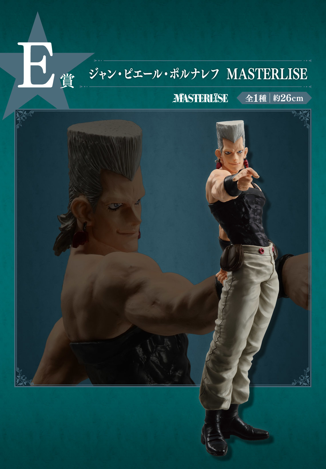 「一番賞 JOJO的奇妙冒險 STARDUST CRUSADERS」,以第三部《星塵遠征軍》為核心,推出 A賞 ~ L賞 +最後賞等豐富的獎品!採用高階造型「MASTERLISE」系列打造的角色模型,細膩再現精緻的服裝細節,收錄有:A賞 空條承太郎、B賞 花京院典明、C賞 喬瑟夫·喬斯達、D賞 穆罕默德·阿布德爾、E賞 約翰·皮耶爾·波魯納雷夫 以及 F賞 伊奇,最後一賞為 DIO MASTERLISE,透過精緻、動感的JOJO立姿態,將JOJO的魅力一次收藏!另外還有撲克牌、F-MEGA MASTERELIVE COLLECTION、靈魂撲克籌碼、筆記本、橡膠收藏等精彩的賞品~