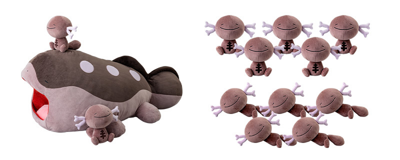 「寶可夢毛絨玩具 一起打哈欠...療癒土王 布偶」,將有肥肥胖胖深褐色身軀、豆豆眼與大嘴的土王,以份量十足的 90 公分尺寸立體化~用絨毛材質再現土王張開大嘴打哈欠的表情,徹底還原背部的白色斑點等可愛又精緻的造型!另外,最基本款附有兩隻帕迪亞烏波布偶,分別有坐姿和躺姿兩種款式,放鬆的表情、動作和毛茸茸的模樣超級療癒!就像在帕底亞地區一樣,出沒在沼澤的土王會幫助烏波,讓烏波坐在自己背上渡河。現在那些需要被治癒的人也可以加入,感受被土王幫助的療癒感!