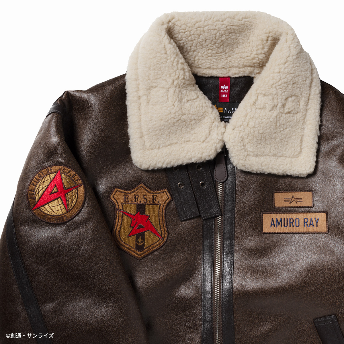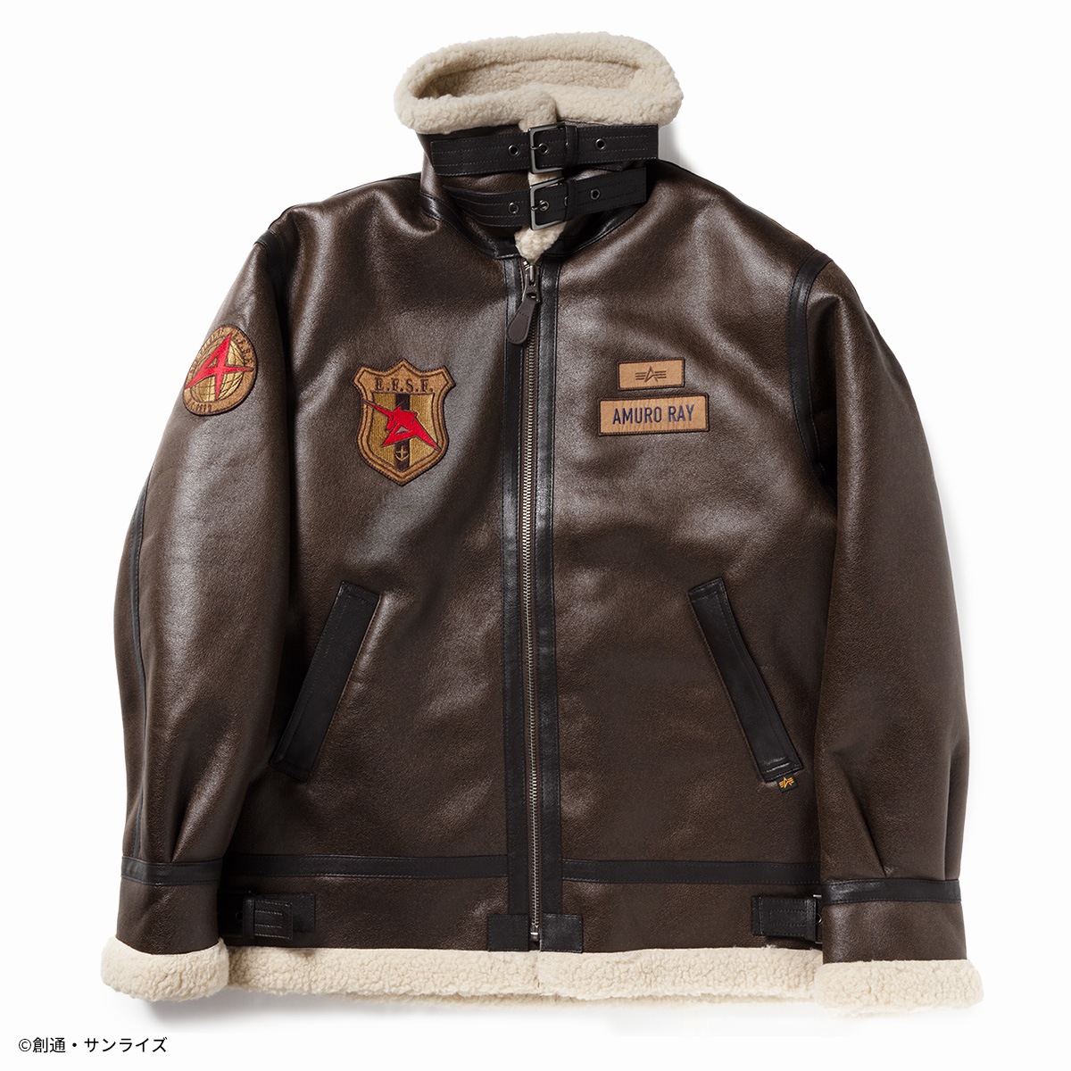 以棕色合成皮革為基礎,看起來十足的古著氣息,搭配地球聯邦與阿姆羅個人元素的布章搭配,非常適合喜歡美式穿搭的朋友著用。