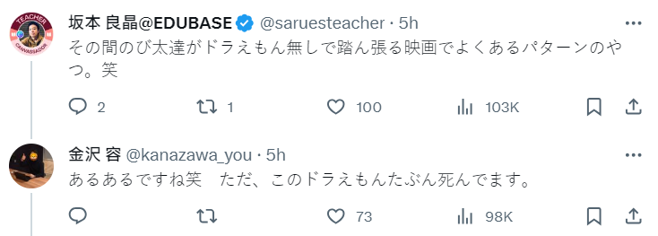 也有人表示這個場面也很像某些劇場版電影的情節,大雄與夥伴們在缺少哆啦 A 夢的情況下必須繼續前進的情節。