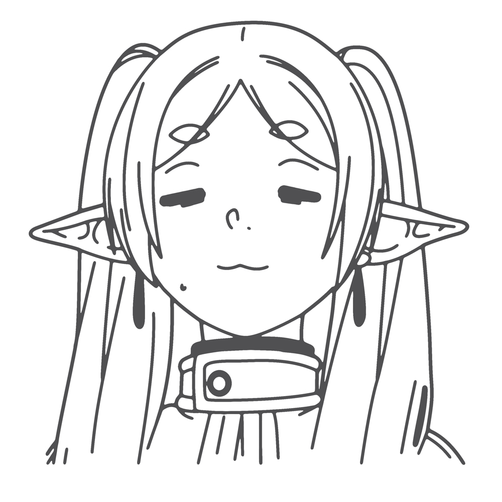 以芙莉蓮因為心虛想隱瞞費倫的表情簡單設計,這個神情真的每次看都覺得很有趣 XD。