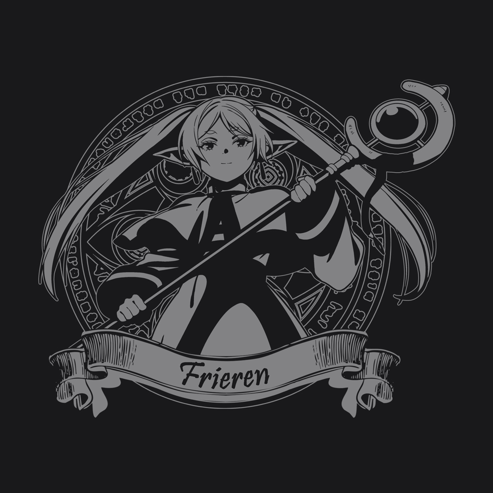 為 COSPA 的定番款式,簡單在背後印上動畫中拿著魔法杖的芙莉蓮插圖,正面左胸則為芙莉蓮的剪影與英文文字,此款厚度較厚,非常適合秋冬穿著。