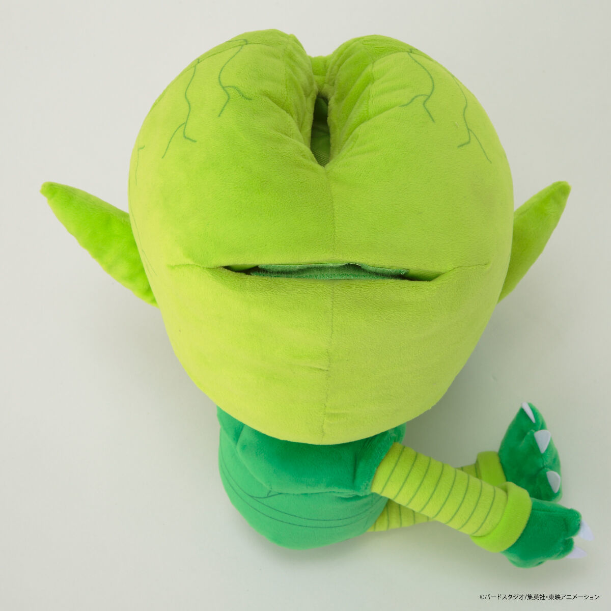 本作擁有 34 公分的高度,以十分可愛的大頭比例重新詮釋了蔬菜人的造型,但奸詐的壞笑表情可說是完整保留,並能夠利用雙手的魔鬼氈將其固定在任何地方,就像蔬菜人當初緊緊抓著飲茶一樣牢靠!而蔬菜人可以從頭頂縫隙中射出溶解液的角色設定則被貼切地用來裝面紙,真的是大爆笑