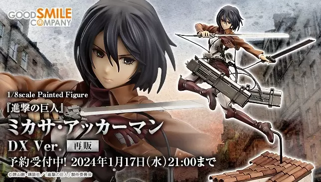 隨著人氣動畫《進擊的巨人The Final Season 完結篇後篇》迎來最後大結局,日本 GOOD SMILE COMPANY 也重新再販推出《進擊的巨人》人氣商品「米卡莎‧阿卡曼」1/8比例 PVC 塗裝完成品,並有一般版 / DX ver. 雙版本,預計將於 2024 年 12 月再度發售!
