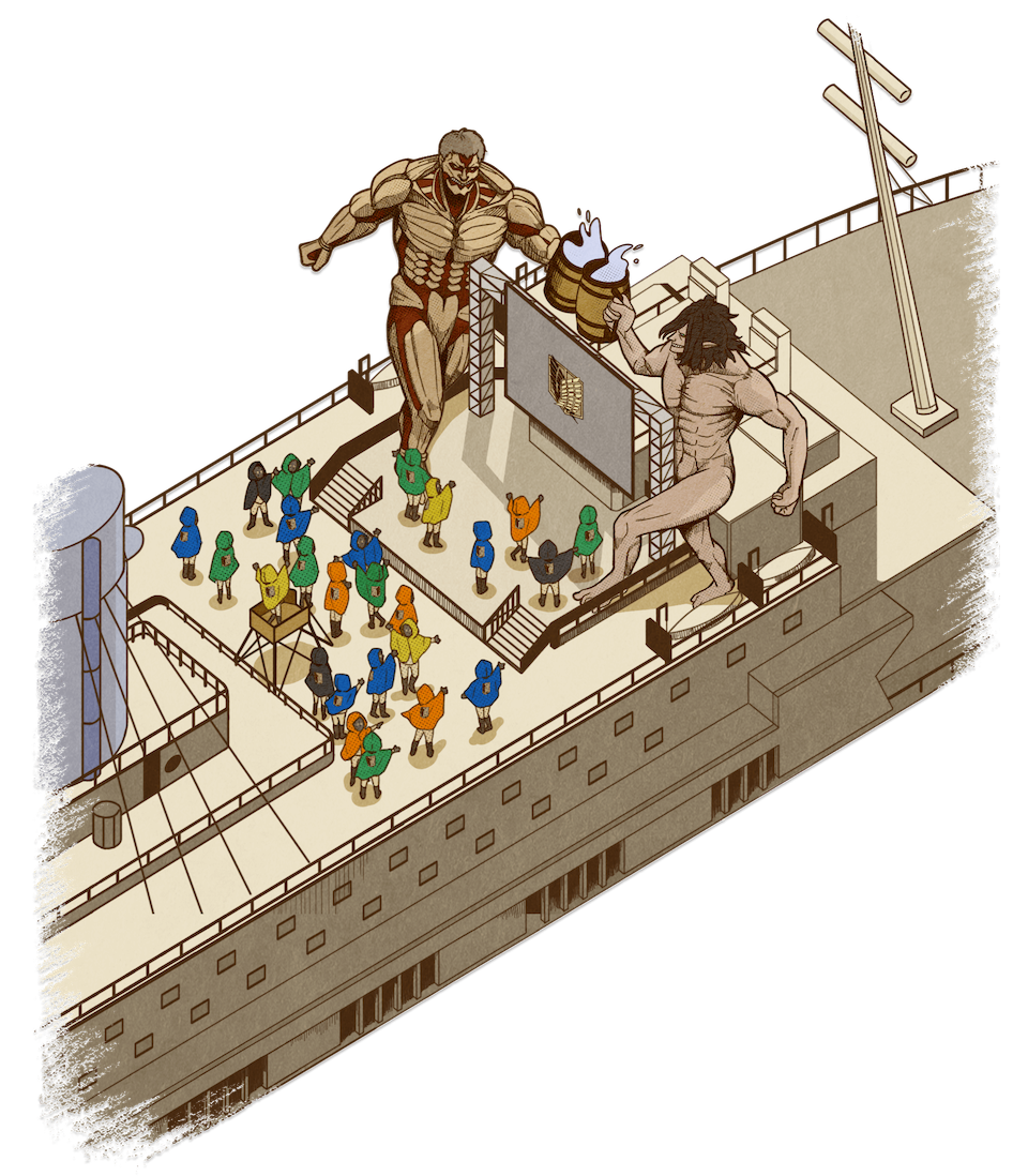 為紀念動畫《進擊的巨人》終於迎來大結局,官方特別推出讓全球粉絲共襄盛舉的線上活動『進擊的巨人 Worldwide After Party』,粉絲們可以進入特別設計的巨人主題遊輪,在獨特的 3D 環境中體驗與來自世界各地的粉絲齊聚的樂趣,並和動畫工作人員和聲優們一起慶祝