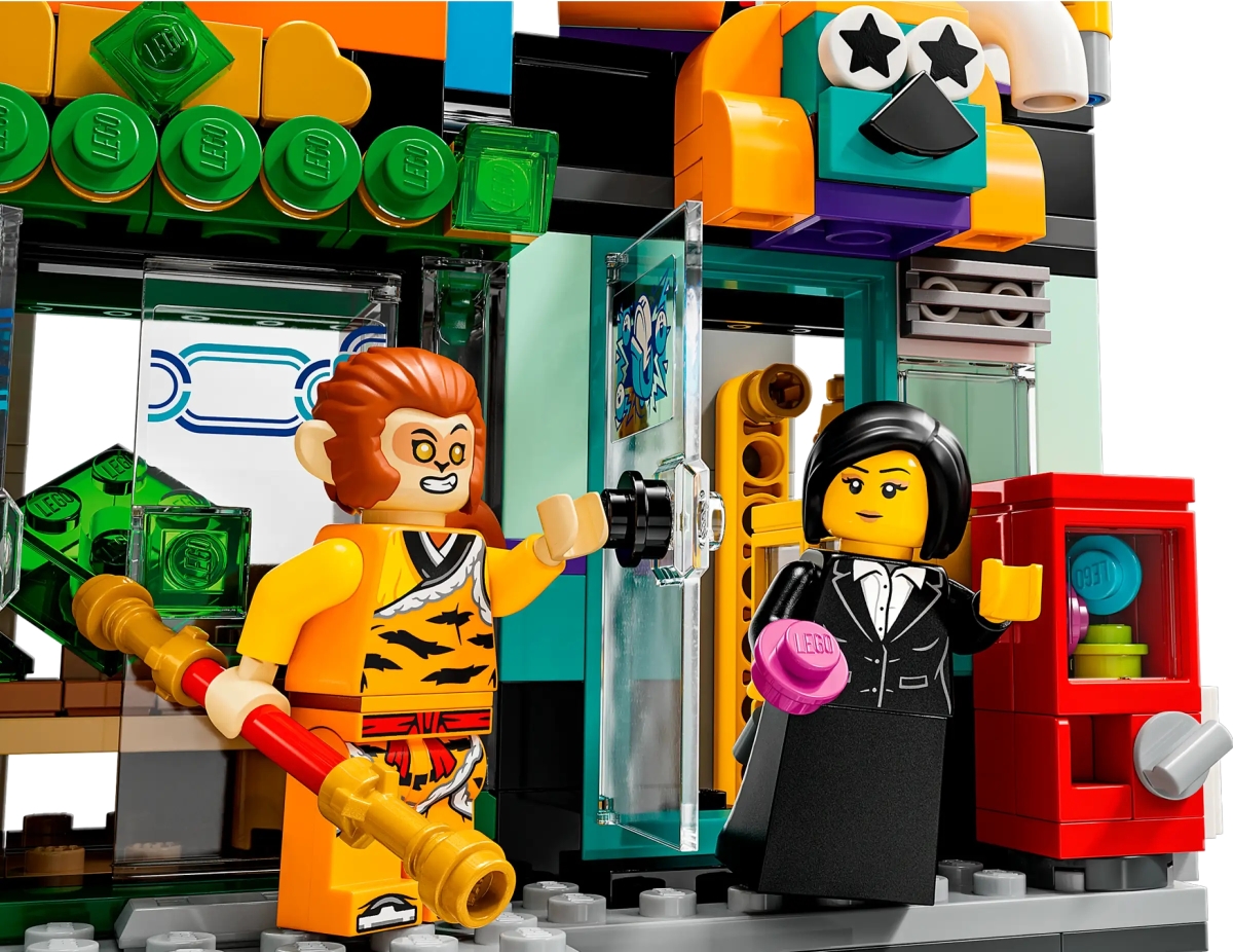 在《悟空小俠》的故事設定中,萬千城即是在孫悟空封印了牛魔王、天下太平之後所發展成的現代化都市,本作一共包含了 2330 片零件,除了重現了這座城市的繁華熱鬧與繽紛調性的配色之外,與早先推出的「80036 蘭燈城 (The City of Lanterns) 」也相互呼應、採用同規格的模組化設計,組完之後高約 57 公分並可以得到一個主要的骨架底座跟豐富的商店、電梯、摩天輪......等,除了可以跟說明書一樣組出官方設計師打造的建築之外,更可以發揮創意重組、任意變化同規格的店舖位置。