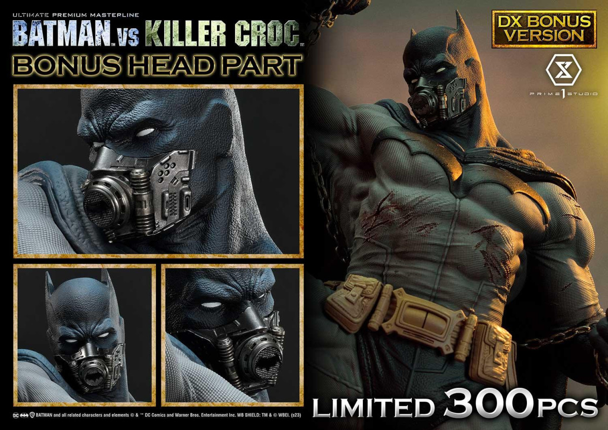 ▼ 在同步發行的 DX版中,附上了蝙蝠俠面無表情的替換頭雕,以及兩種造型不同的殺手鱷頭雕,而在 Prime 1 Studio 線上商店購入還可以獲得戴上呼吸面罩的蝙蝠俠頭雕特典。