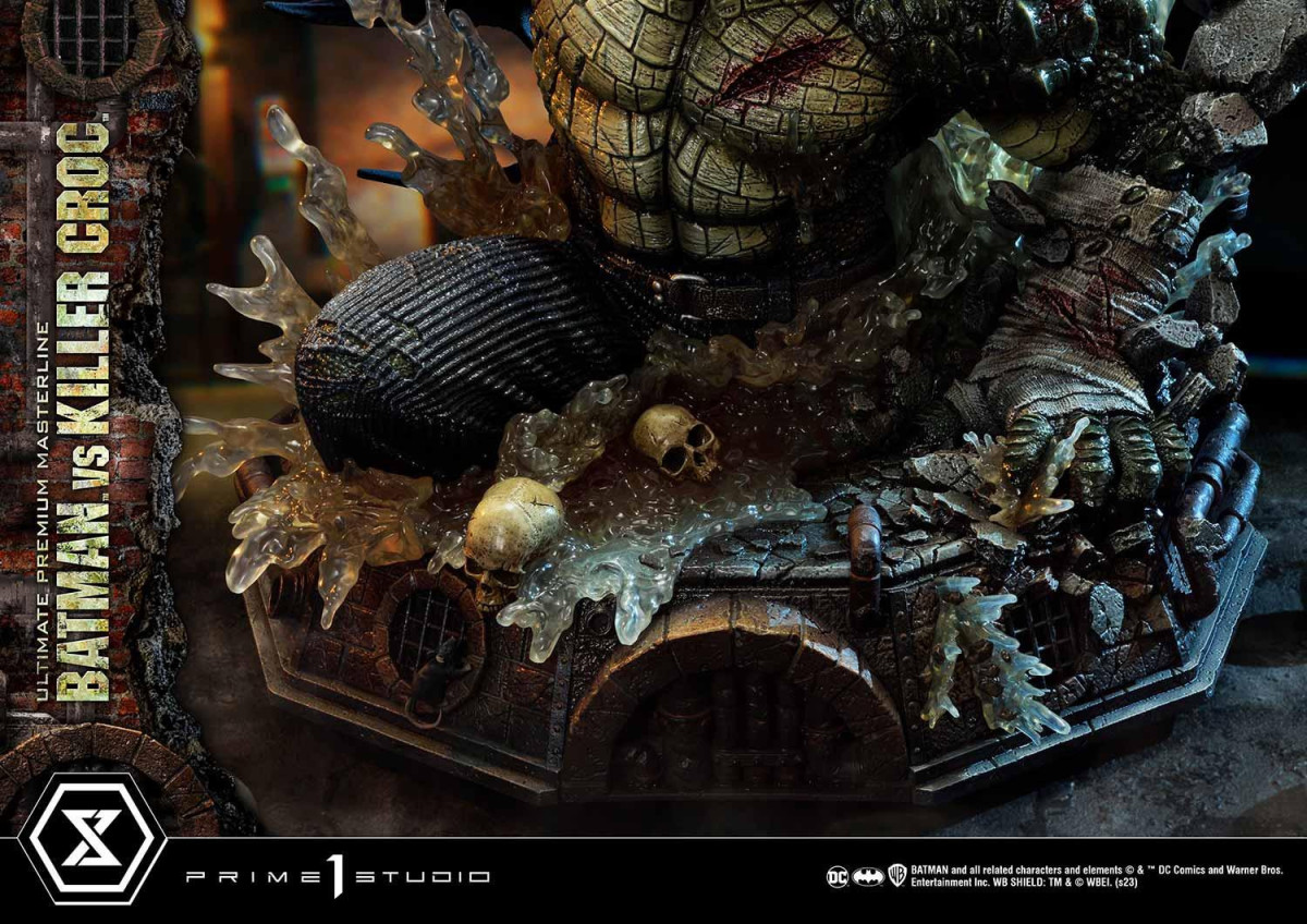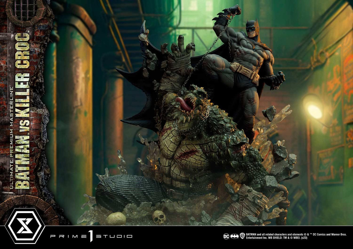 本作高約 71 公分,打造出蝙蝠俠與殺手鱷在下水道大戰的場景,蝙蝠俠右手拉著鎖鏈勒住殺手鱷的脖子與右臂,而殺手鱷也呈現出猛力掙扎的樣貌,蝙蝠俠的軀體線條、蝙蝠戰衣因動作產生的皺褶、殺手鱷極為壯碩的肌肉、在體表鱗片施以的漸層塗裝......等細節都有出色表現,而遍佈在兩者身上的刮傷與抓傷、刺進殺手鱷體內的蝙蝠飛鏢、殺手鱷躍動感十足的舌頭,以及底座當中濺起的髒水、飛揚的石塊都讓這場戰鬥更為激烈!